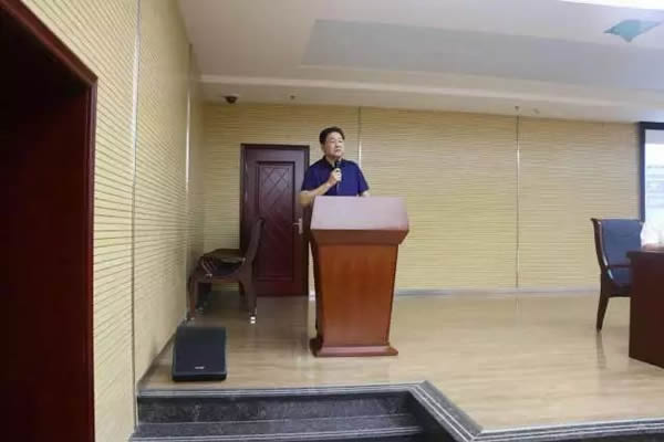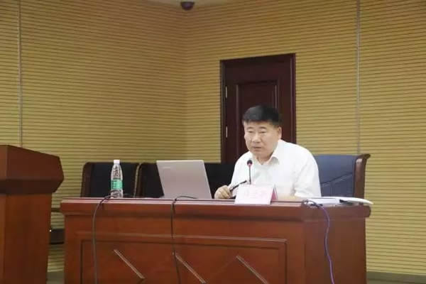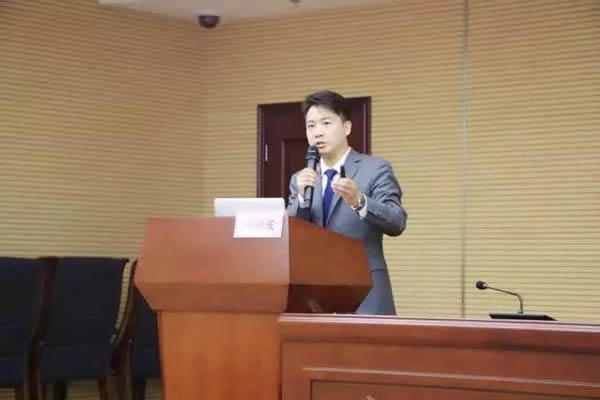 讲师朱维波在做律师协助处理突发性、复杂性、群体性涉法涉诉信访案件原则和方法的讲座。