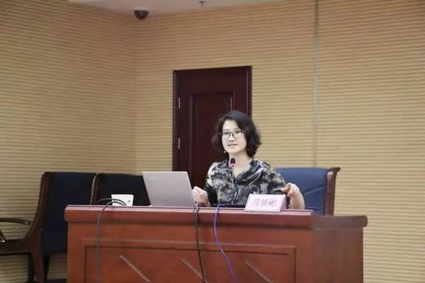 讲师池英花在做律师在依法行政中的角色和作用的讲座。