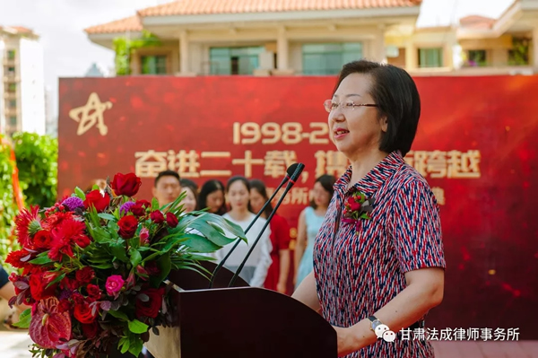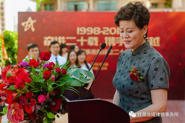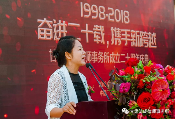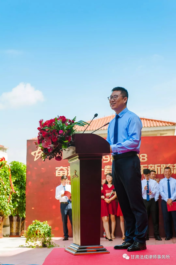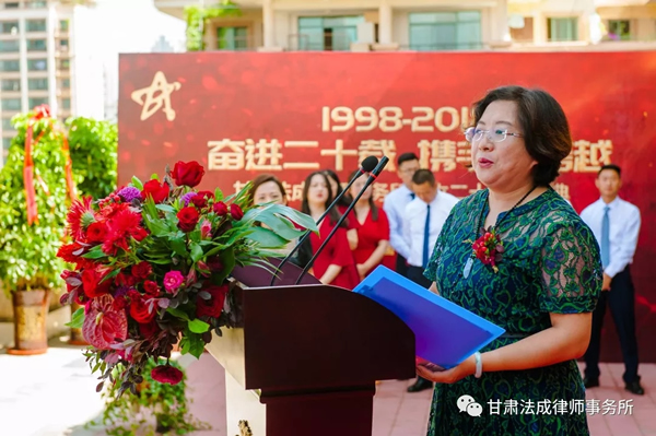 法成的骄傲和荣光,离不开凝心聚力、一路扶持与鼓励的省、市律协各级领导、各位同仁,甘肃省律协副会长、甘肃合睿律师事务所王金贵主任和兰州市律协会长、甘肃中立源律师事务所陈玉萍主任分别致辞,两位会长对法成的祝福与厚望,使全体法成人备受鼓舞,法成律师在省、市律协的关心支持下定将牢记使命、不负众望、继续奋进。