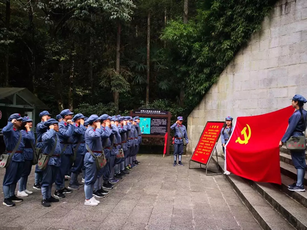 学习队伍在井冈山革命烈士陵园面向党旗庄严宣誓