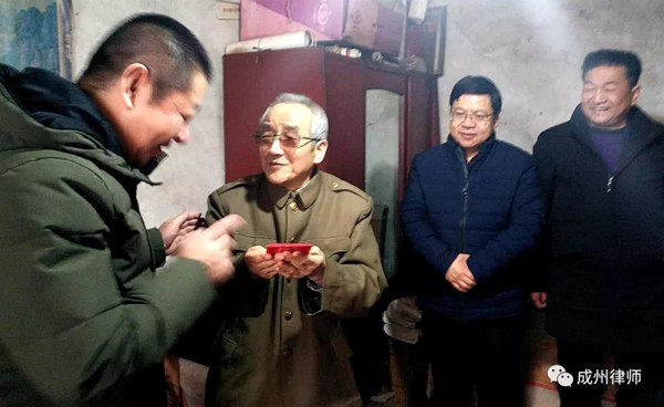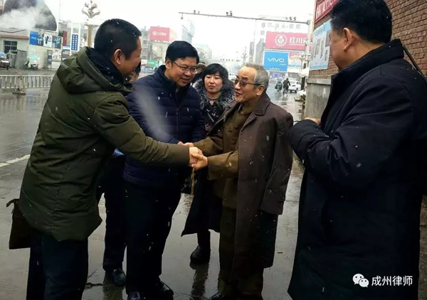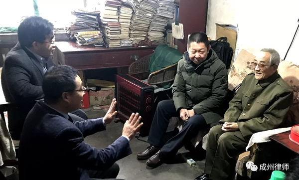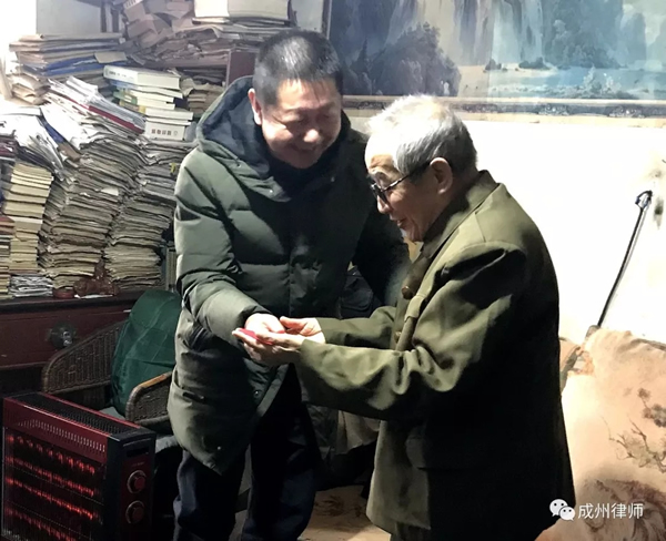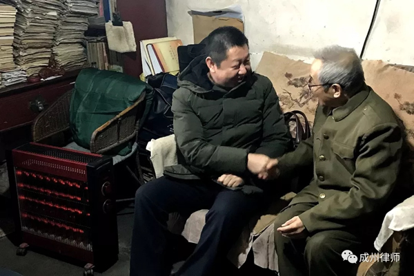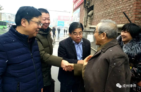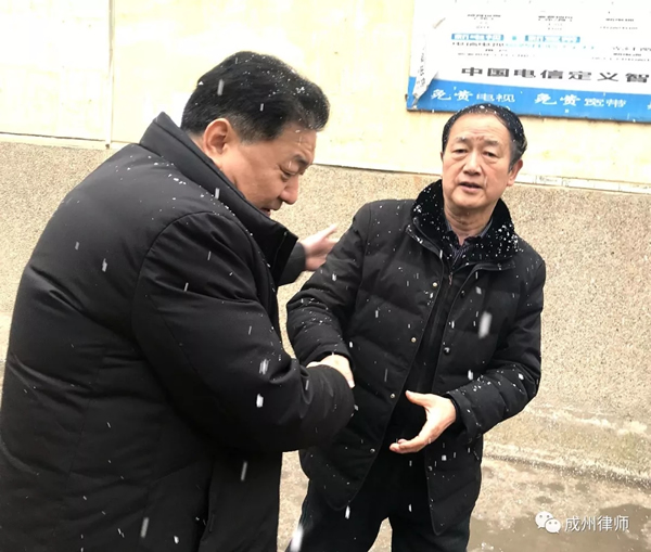 2019年1月10日,大雪纷飞,寒风刺骨。省律师协会秘书长张维武同志,冒着严寒专程来成县慰问了耄耋之年的张启宗律师和年近古稀的刘克信律师,给他们带来了冬日的问候。
