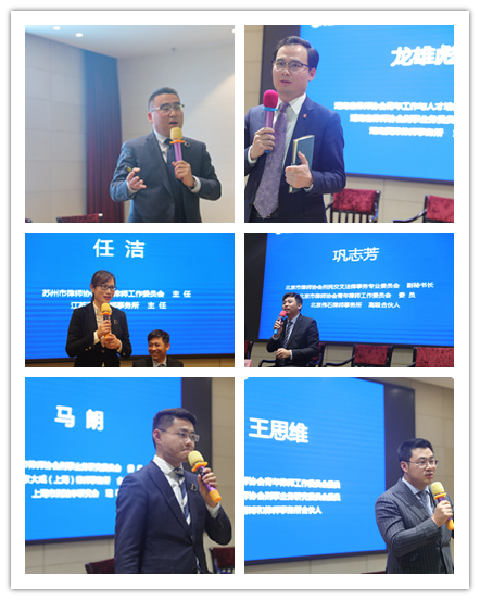 八位嘉宾分别是:北京市律协刑委会副主任、中国政法大学博士研究生常铮(图一左二);山西弘韬律师事务所合伙人、太原市律协刑委会副主任朱帅(图一右二);浙江厚启律师事务所主任、杭州市刑民交叉专委会主任胡瑞江(图二左一);湖南真泽律师事务所主任、湖南省律协常务理事、青年律师与人才培养委员会主任龙雄彪(图二右一);江苏天贤律师事务所主任、江苏省律协刑委会委员、苏州市律协青工委主任任洁(图二左二);北京市伟石律师事务所高级合伙人、北京市律协刑民交叉法律事务副秘书长、北京市律协青工委委员巩志芳(图二右二);大成(上海)律师事务所合伙人、上海市刑法研究会理事马朗(图二左三);上海市博和律师事务所合伙人、上海市律协青工委委员、上海市律协刑委会委员王思维(图二右三);