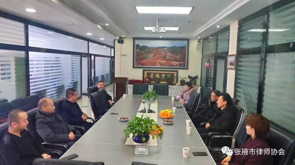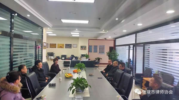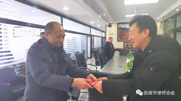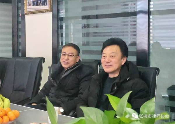 同时,赵耀副会长还仔细察看了甘肃振泽律师事务所办公环境,询问和了解张掖市各律师事务所的办公条件,并与振泽律师事务所在所的律师进行了深切交谈,鼓励大家在新的一年里拓展律师业务、提升法律服务水平,努力为群众幸福安康、社会和谐稳定提供优质高效的法律服务,为促进张掖市律师行业健康发展做出新的贡献。