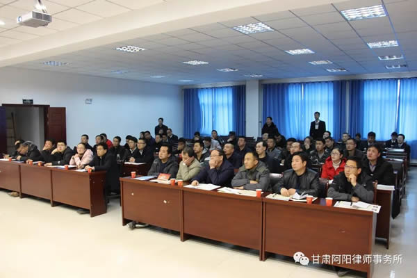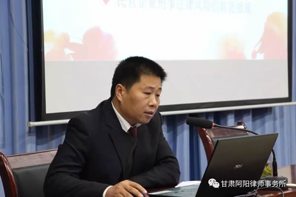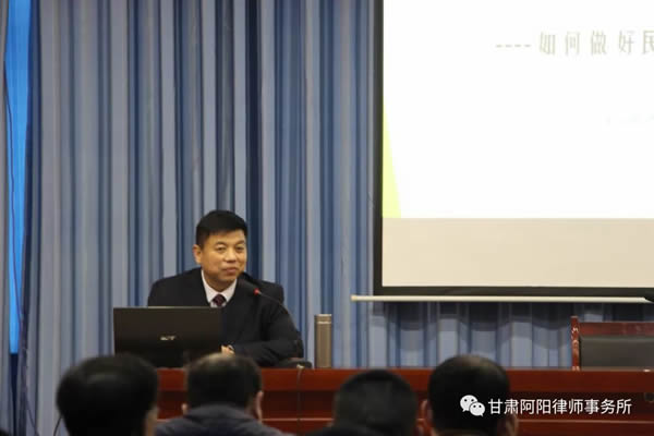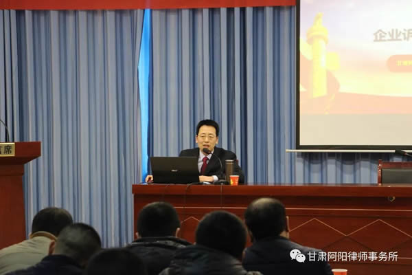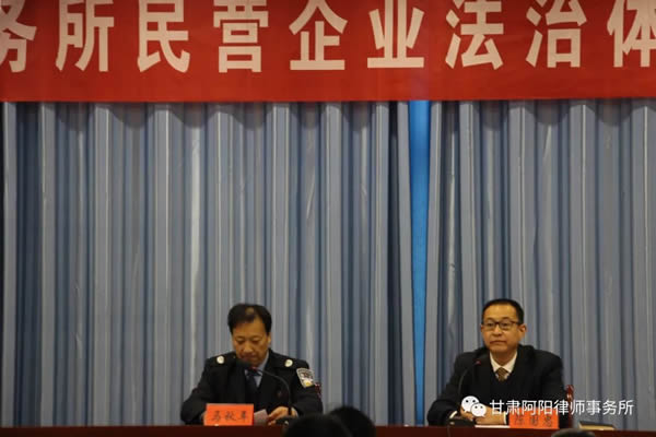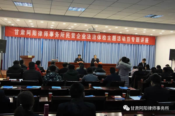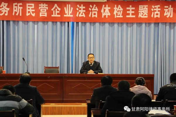 为深入贯彻习近平总书记在民营企业法治座谈会上的讲话精神,落实司法部、省司法厅、市司法局、县司法局相关文件精神,帮助民营企业完善治理结构,健全管理制度,防范法律风险,化解矛盾纠纷,1月26日上午9时,我所举办了“民营企业法治体检主题活动日专题讲座”活动。县司法局副局长马秋年和80名民营企业家代表参加了此次活动,平凉市律师行业党委副书记、平凉市律师协会监事长、甘肃阿阳律师事务所主任陈国忠主持本次活动。