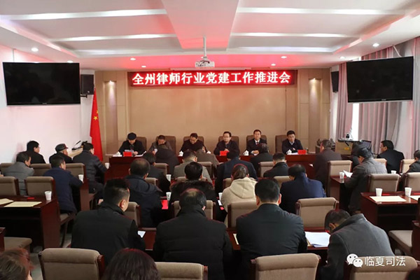 2019年1月3日,经州委、州政府同意,州委组织部、州司法局召开了全州律师行业党建工作推进会。会议深入学习贯彻习近平新时代中国特色社会主义思想,认真落实全国、全省组织工作会议和全国、全省律师行业党的建设工作推进精神,研究部署全州律师行业党建工作。州司法局党组书记、局长李自成,州委组织部部务委员慈文学出席会议并讲话,州社会组织党工委副书记李荣、州司法局党组成员、副局长马德勇、朱仲山出席会议,州司法局党组成员、副局长、临夏州律师行业党委书记邓万荣主持会议。各县市委组织部副部长,各县市司法局局长,州律师行业党委组成人员,州局办公室、政治处、律师科、州律师协会负责人,州局各党支部书记,各律师事务所主任等50多人参加会议。