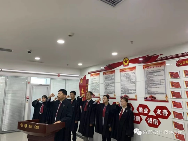 “我宣誓:我是中华人民共和国律师,忠于宪法,忠于祖国,忠于人民,维护当事人合法权益,维护法律正确实施,维护社会公平正义,恪尽职责,勤勉敬业,为建设社会主义法治国家努力奋斗!”