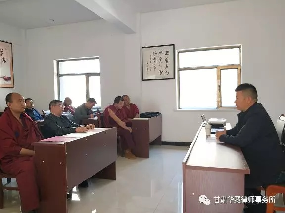 本次授课活动由甘肃华藏律师事务所律师向天堂寺、华藏寺宗教教职人员讲授《宪法》《宗教事务条例》《甘肃省宗教事务条例》《宗教活动场所财物监督管理办法》《宗教事务方面部分行政许可项目实施细则》等法律法规及党的现行民族宗教政策。