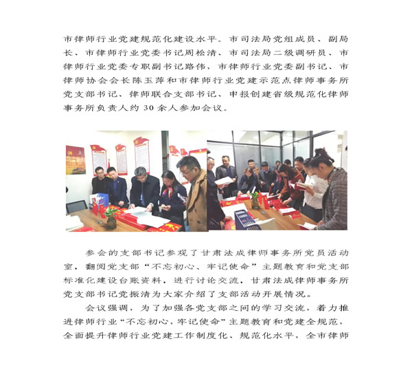 兰州市律师行业党委召开全市律师行业“不忘初心、牢记使命主题教育暨党支部建设标准化学习交流会