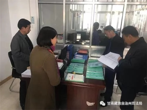 根据中共甘省律师行业委员会关于开展“不忘初心·牢记使命”主题教育巡回指导暨规范化律师事务所建设审核工作的安排部署,2019年11月20日下午,省司法厅律师工作处处长、省律师行业党委副书记李智,省律师行业党委委员、省律师协会副会长赵耀,省司法厅律师工作处干部张小明,就我州开展“不忘初心、牢记使命”主题教育暨党建工作开展情况、规范化律师事务所建设进行检查指导。在甘南州司法局党组成员、副局长,州律师行业党委书记张正顺,甘南州律师协会会长苏海军,市司法局副局长胡建瑞陪同下深入合作市法律援助中心、甘肃联衢律师事务所、甘肃雪之羚律师事务所,通过实地查看、查阅资料、座谈交流等方式,对开展“不忘初心、牢记使命”主题教育情况进行了全面检查。同时,对甘南州羚城律师事务所申报的省级规范化律师事务所从基础管理、办公场所、队伍建设、业务发展、章程修改、规章制度、党的建设、职业道德和执业纪律等方面对照标准,进行了检查审核。