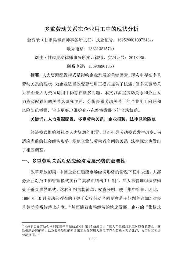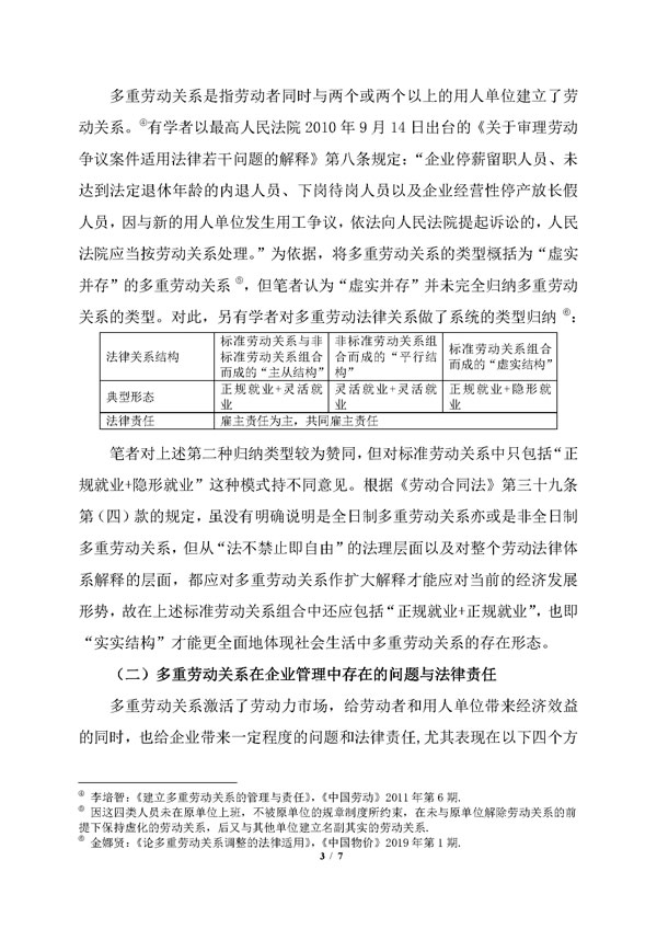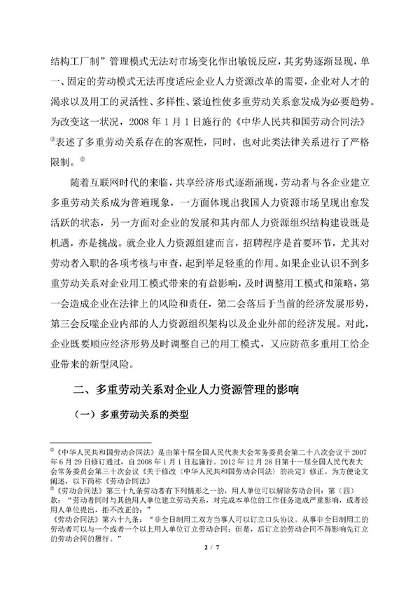 多重劳动关系在企业用工中的现状分析