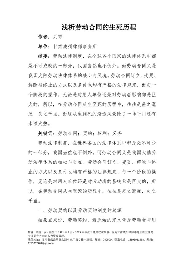 浅析劳动合同的生死历程