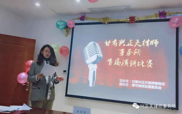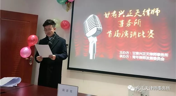 作为一名律师,尤其是一名青年律师,演讲不仅能够提升表达能力,也能够增强自信心,激发工作热情,增加团队内部积极向上的学习氛围。因此,甘肃兴正天律师事务所、甘肃兴正天律师事务所青年律师发展委员会决定举办此次演讲比赛。