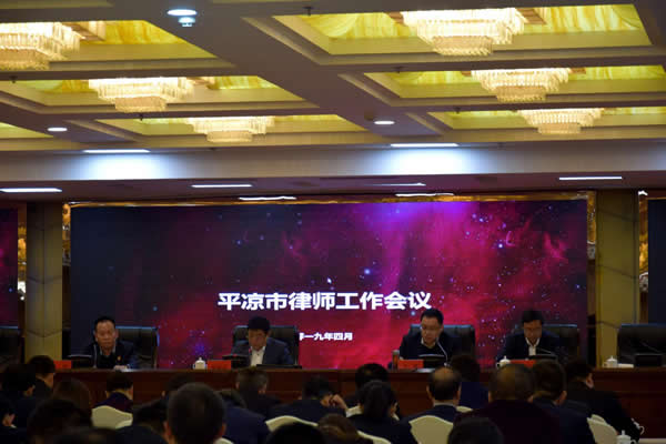 2019年4月15日,全市律师工作会议在平凉市广成大酒店国际会议厅顺利召开。全市共有135名执业律师、50余名实习律师共计180余人参加了会议。此次会议是认真贯彻落实省市司法行政会议精神,对做好今年律师工作,不断提升全市执业律师的服务质量,进一步规范律师执业行为有着重要意义。