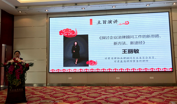 年会以“探讨如何帮助企业化解信贷紧缩后陡增的金融风险、研讨如何帮助企业建立和完善合规审查制度、探讨法治体检过程中发现的企业普遍存在的法律风险及应对策略以及探讨企业法律顾问工作的新思路、新方法和新途径”为主题进行交流讨论。甘肃仁尚律师事务所律师尚蔚、甘肃鑫盾律师事务所律师王丽敏、甘肃本心律师事务所席婷围绕年会主题,分别就“法律顾问如何帮助企业化解信贷紧缩后陡增的金融风险—做好基础工作,拓宽融资渠道”、“企业法律顾问工作的新思路、新方法和新途径”、“房地产经济行业法律顾问服务”做了主题发言。