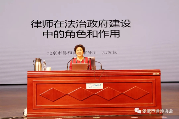 池英花律师系全国政府法律服务联盟执行主席,长期专注于为政府机关提供全面的法律服务,在提升政府的执政能力、建设法治政府方面积累了丰富的实务经验。26日上午,池英花律师主要针对政府法律顾问目前存在的问题和出路,如何改善提升政府法律服务等实务性问题,进行了深入的分析和讲述。