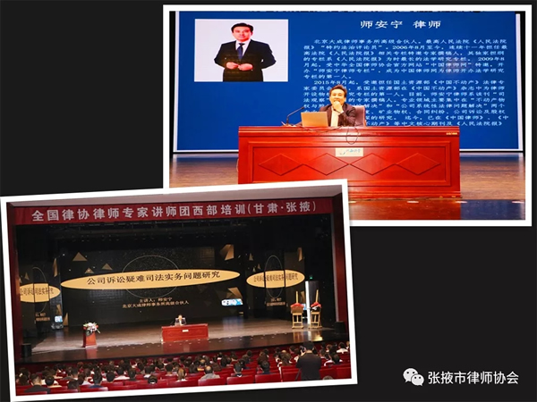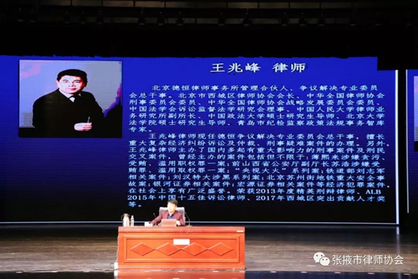 2019年5月25日—26日,“中华全国律师协会律师专家讲师团西部培训班(甘肃-张掖)”在位于河西学院的张掖市律师协会律师培训中心开班。本次培训邀请到北京大成律师事务所高级合伙人师安宁律师、北京易和律师事务所主任池英花律师,北京德恒律师事务所管理合伙人、北京西城区律师协会会长王兆峰律师到会授课。酒泉市、嘉峪关市、金昌市、武威市、陇南市、庆阳市律师协会的律师代表,以及张掖市全体律师、河西学院法学院全体师生共计六百余人参加了此次培训。