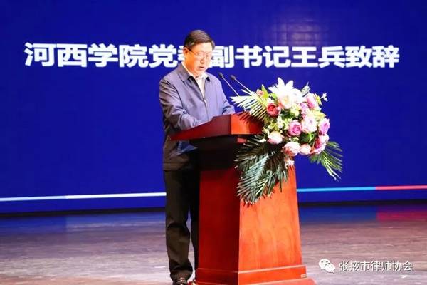 张掖市河西学院党委副书记王兵,及张掖市人民政府副秘书长汪卿泰代表张掖市人民政府分别致辞,祝贺“张掖市律师协会律师培训中心”和“河西学院实习实训暨创业就业基地”的成立。他们表示:张掖市律师协会与河西学院联合成立“中心”和“基地”,是对加强我市律师队伍建设、深化校地合作、提升河西学院法学院教育办学水平的有益探索和积极实践,真诚希望张掖市律师协会与河西学院进一步密切关系,深化校地共建内容,创新校地共建模式,建立长效合作机制,将校地“联姻”做出实效,开创出高校和律师协会合作的新篇章。