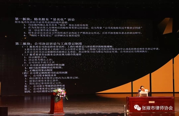 揭牌仪式当天,张掖市律师协会还邀请全国律协律师专家巡回讲师团著名讲师师安宁、池英花、王兆峰,在河西学院“河西讲堂”开展了培训活动,授课内容包括:公司诉讼疑难司法实务问题、行政诉讼类型化疑难实务问题、提供主动式服务,推动政府依法行政、刑事辩护的视野和技能等。酒泉市、嘉峪关市、金昌市、武威市、陇南市、庆阳市律师协会的代表,以及张掖市全体律师、河西学院法学院全体师生共计六百余人参加了此次培训。