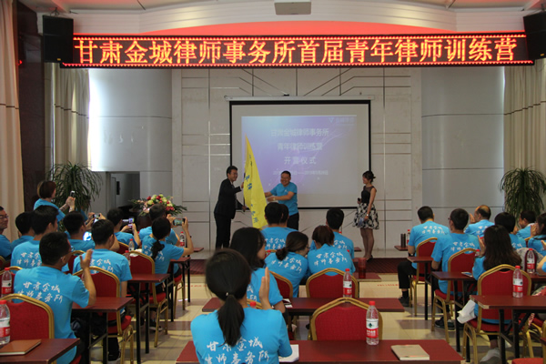 25日上午9时,全所参训人员抵达陇鑫山庄参加青年律师训练营开营仪式,甘肃金城律师事务所主任王祖国致开营词并向首届青年律师训练营授旗。