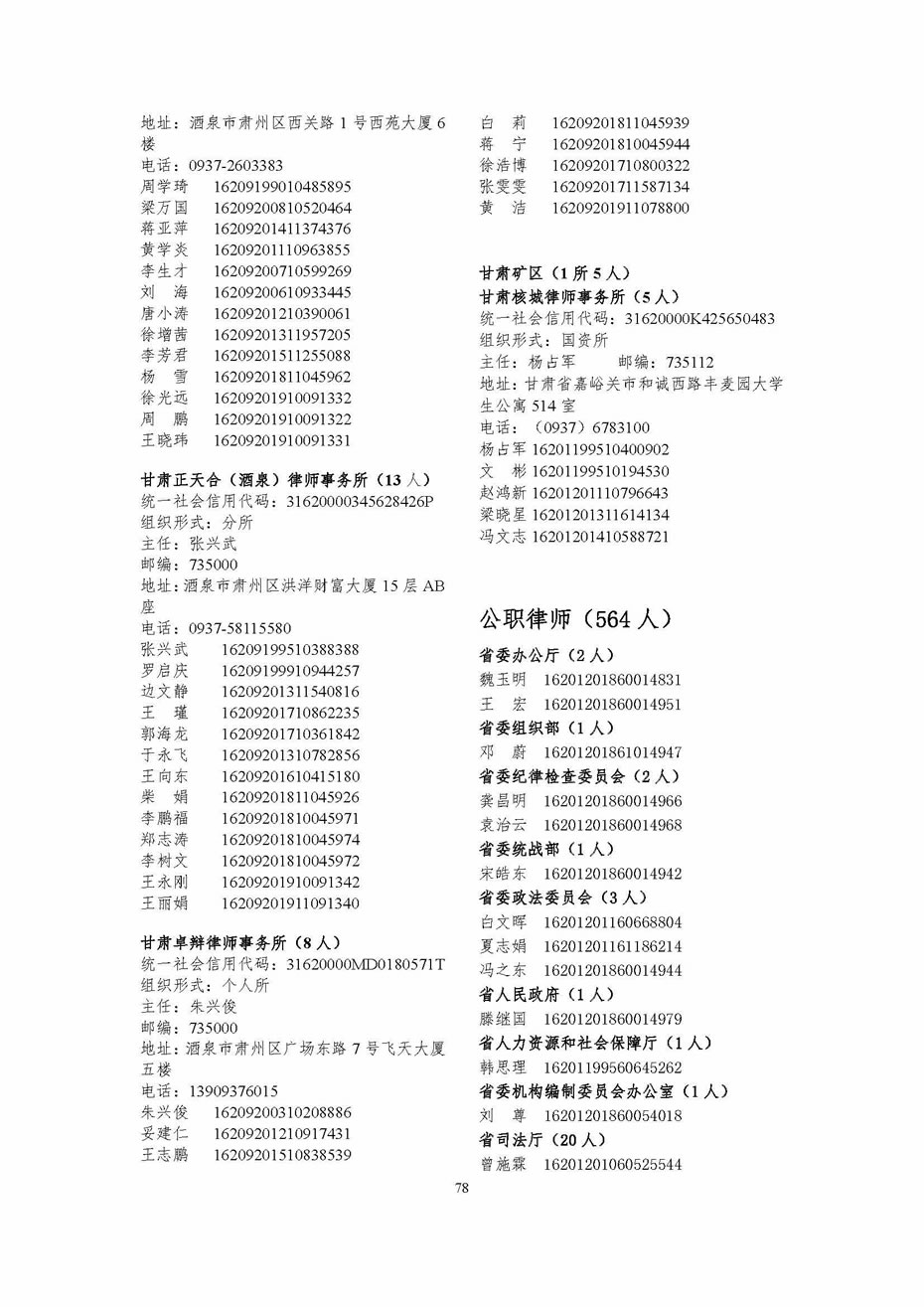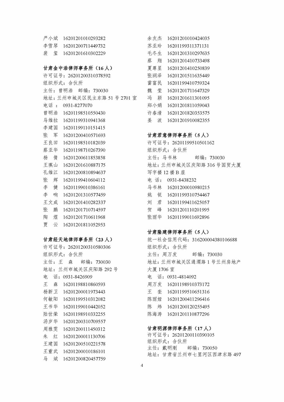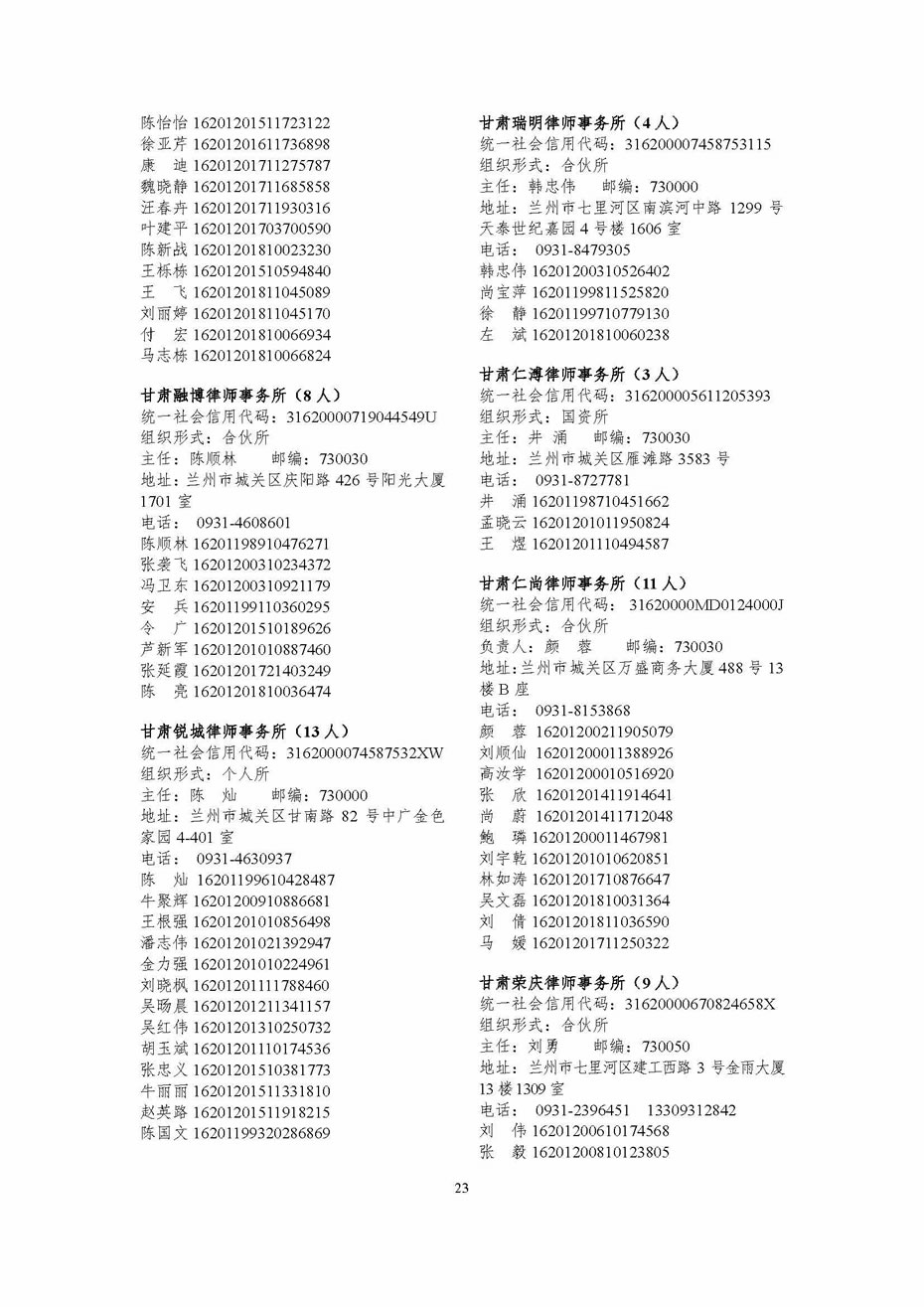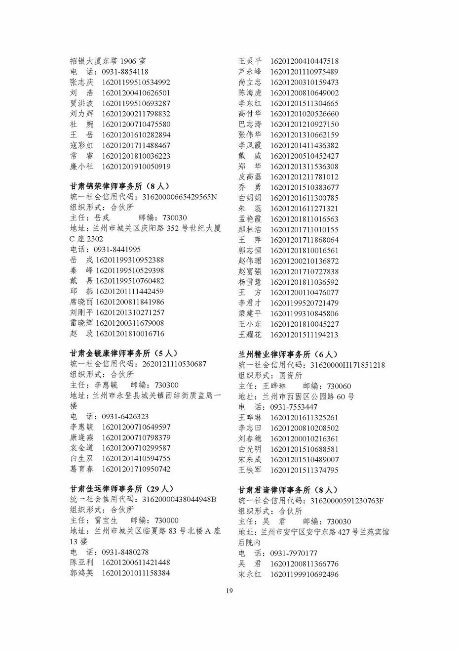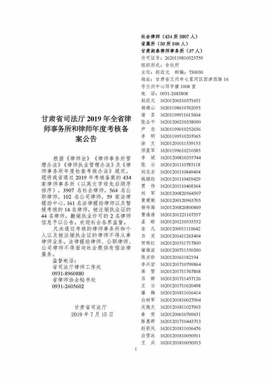 甘肃省司法厅2019年全省律师事务所和律师年度考核备案公告