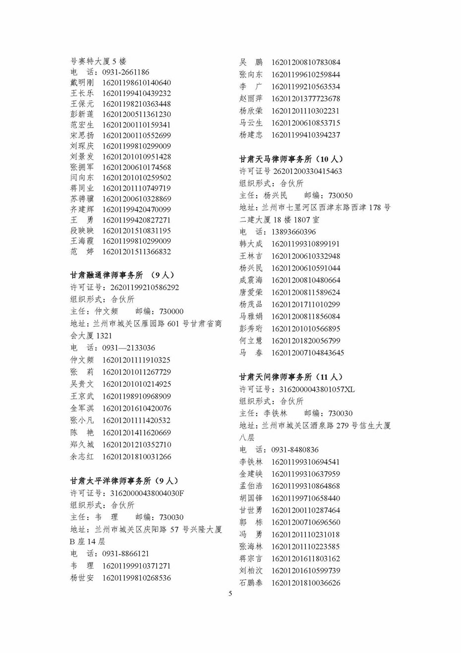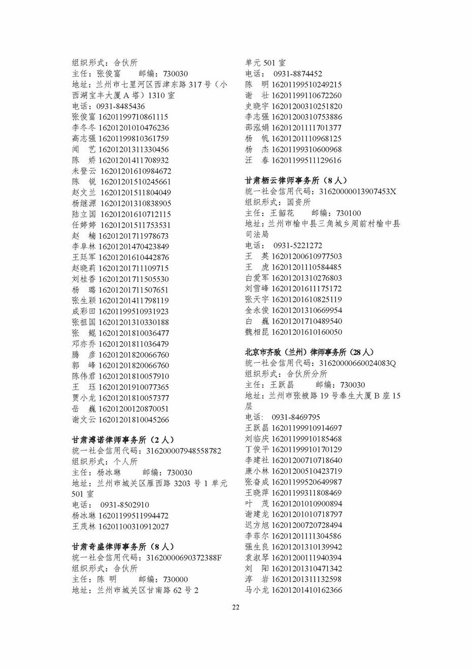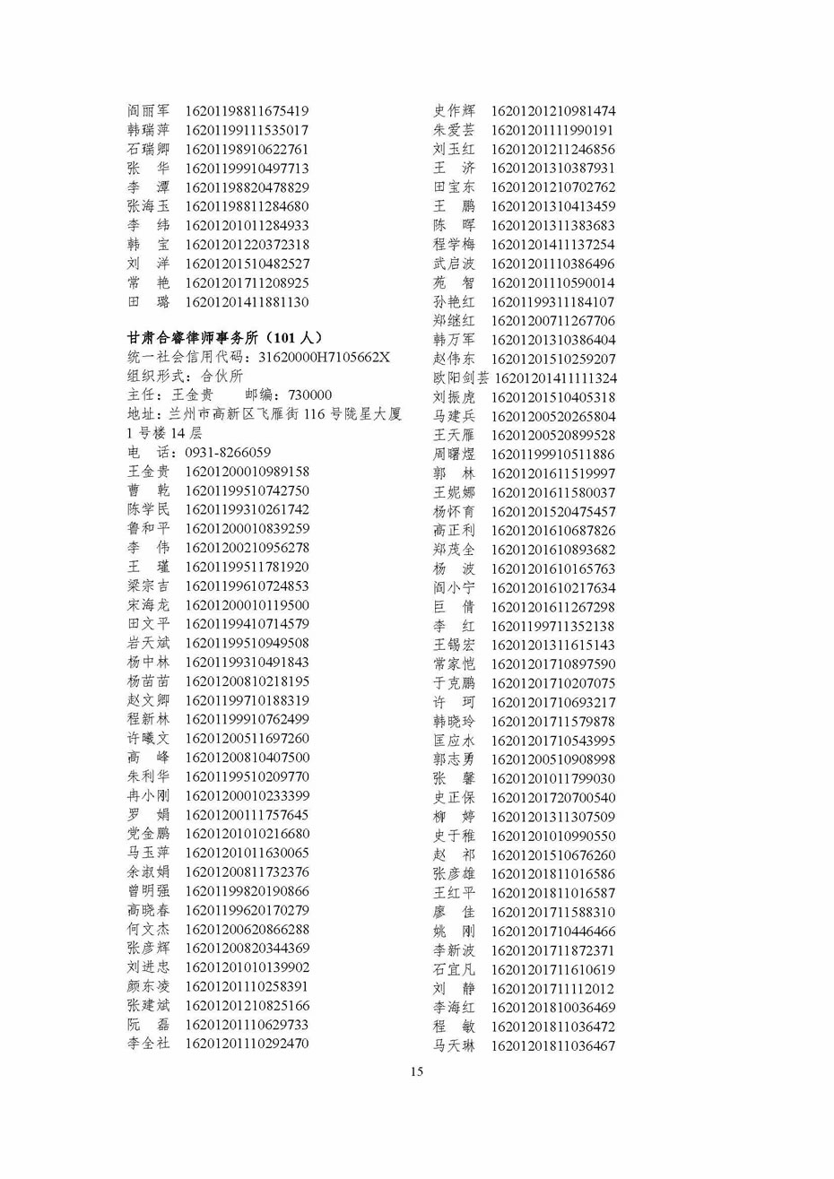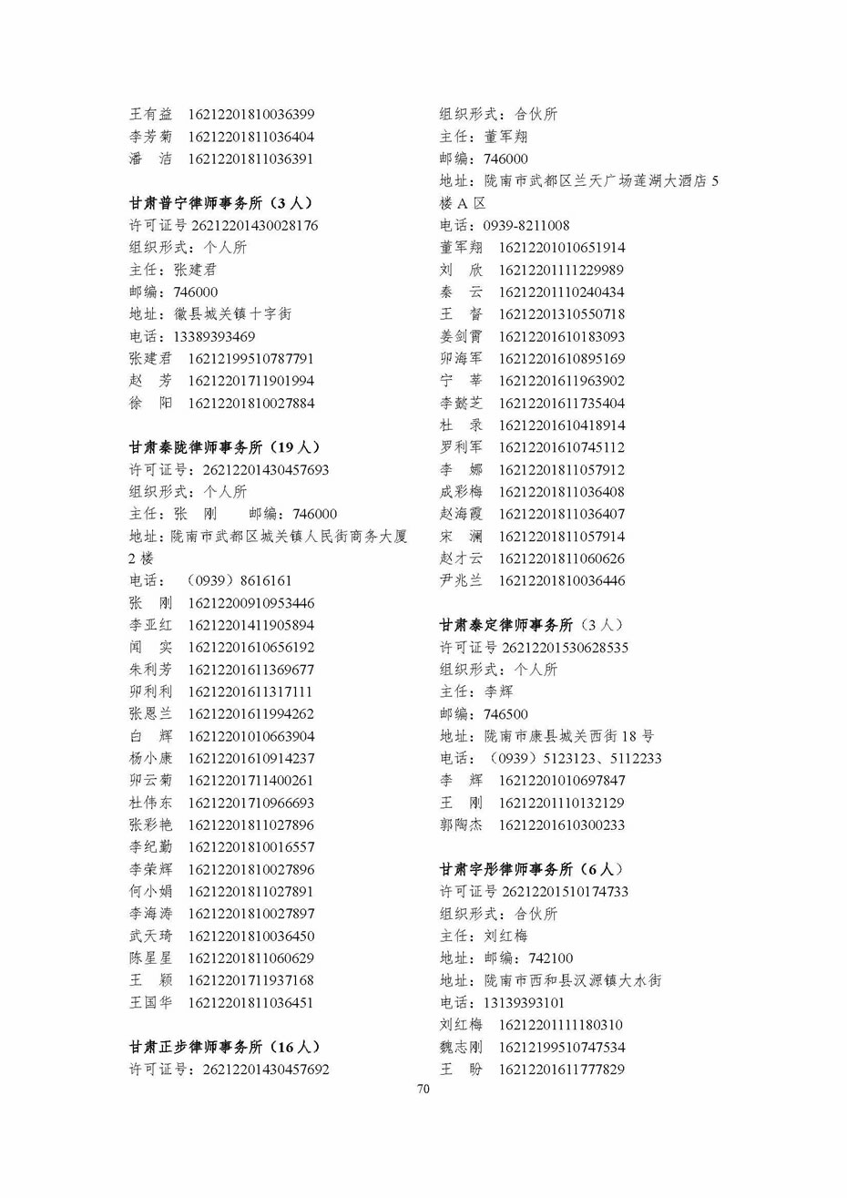 甘肃省司法厅2019年全省律师事务所和律师年度考核备案公告