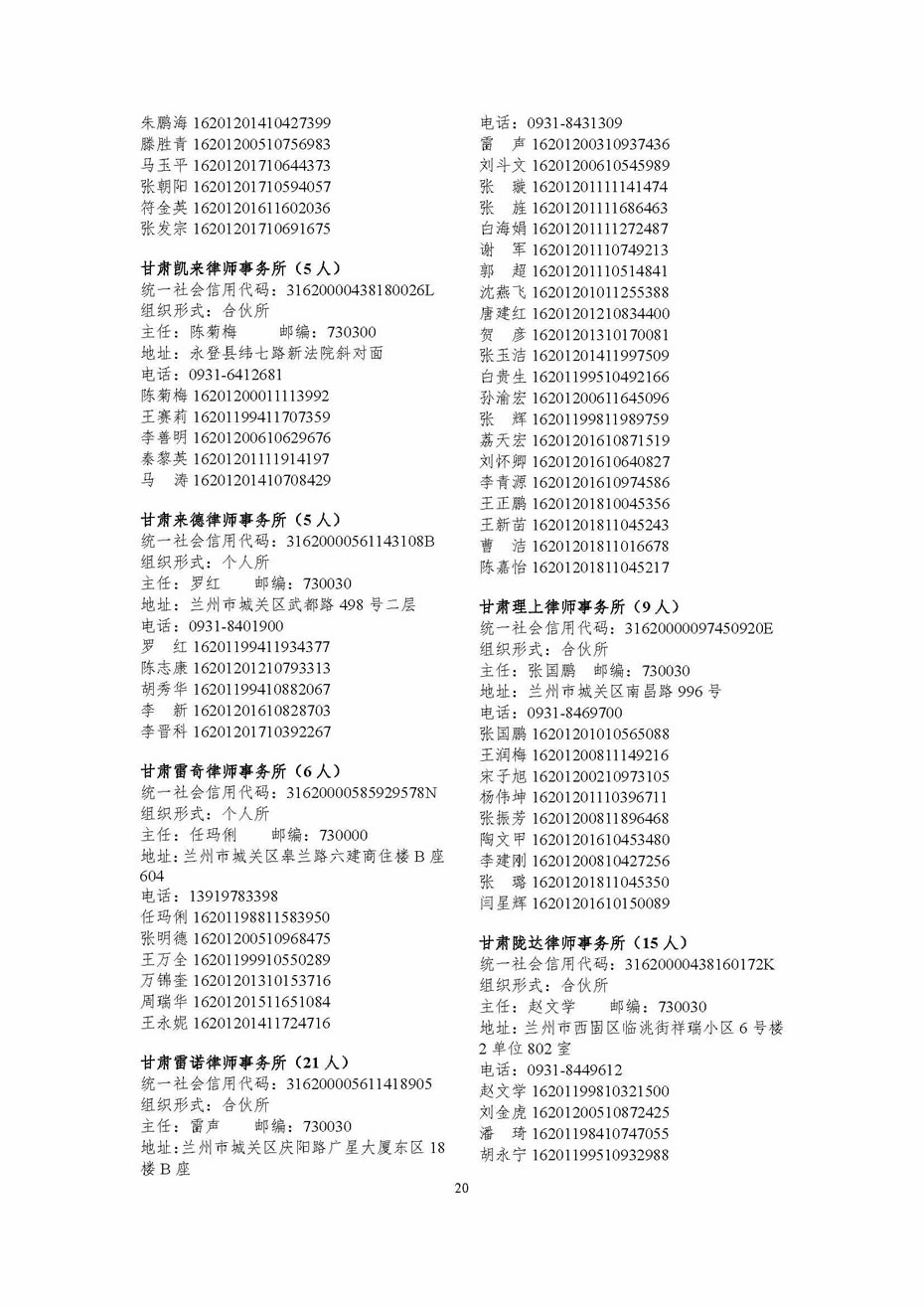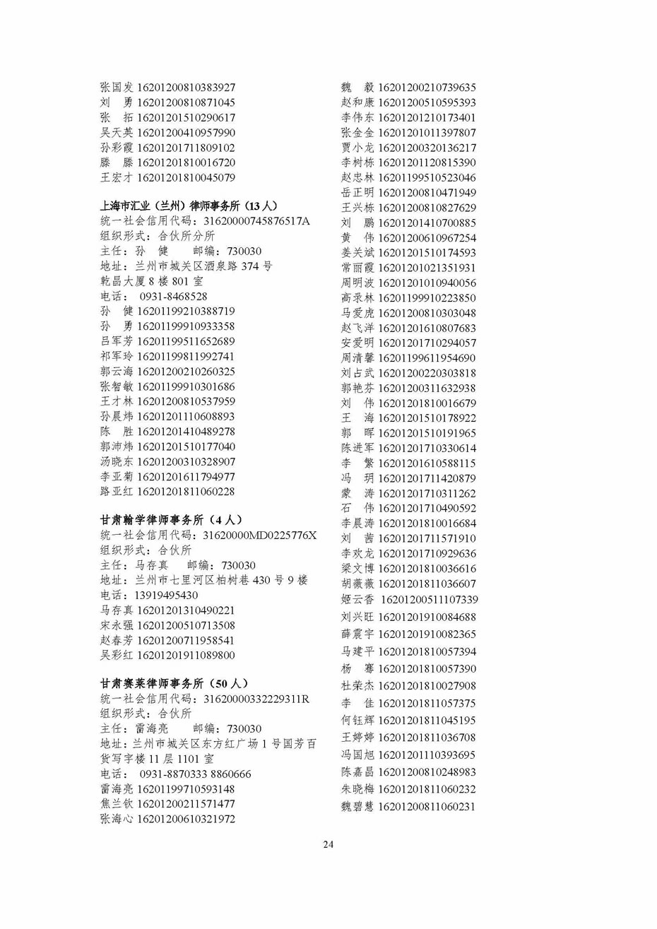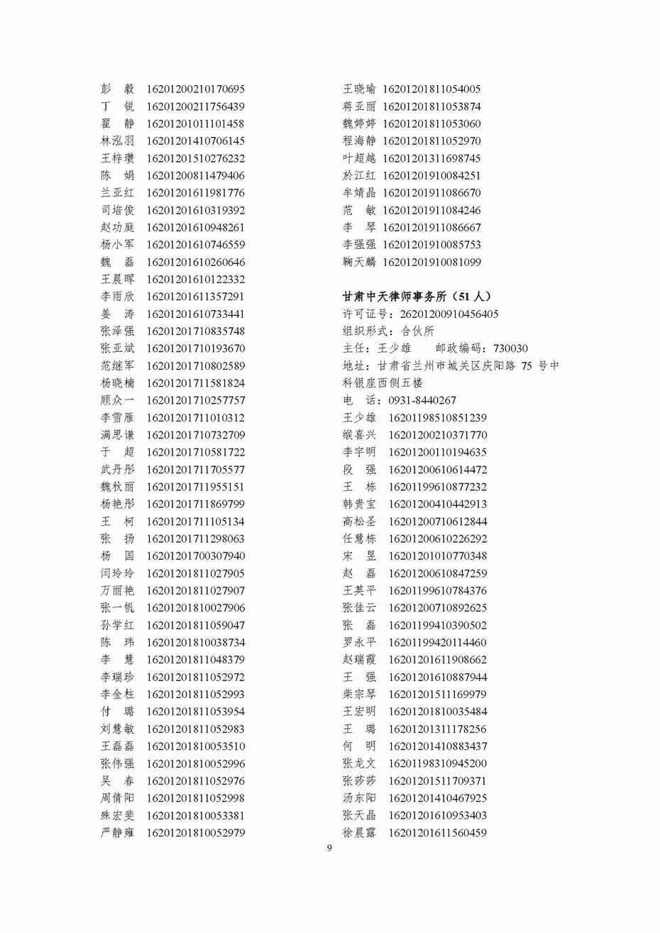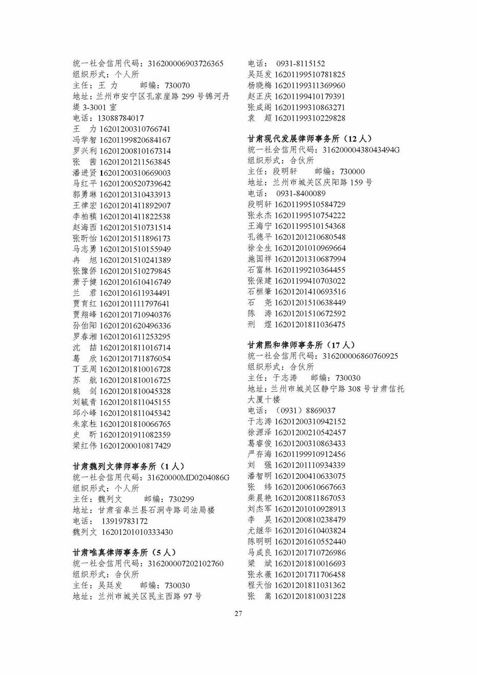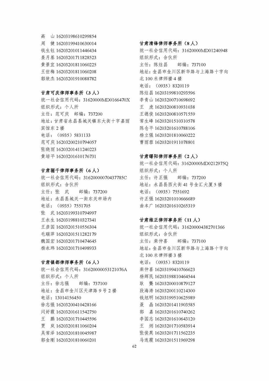 甘肃省司法厅2019年全省律师事务所和律师年度考核备案公告