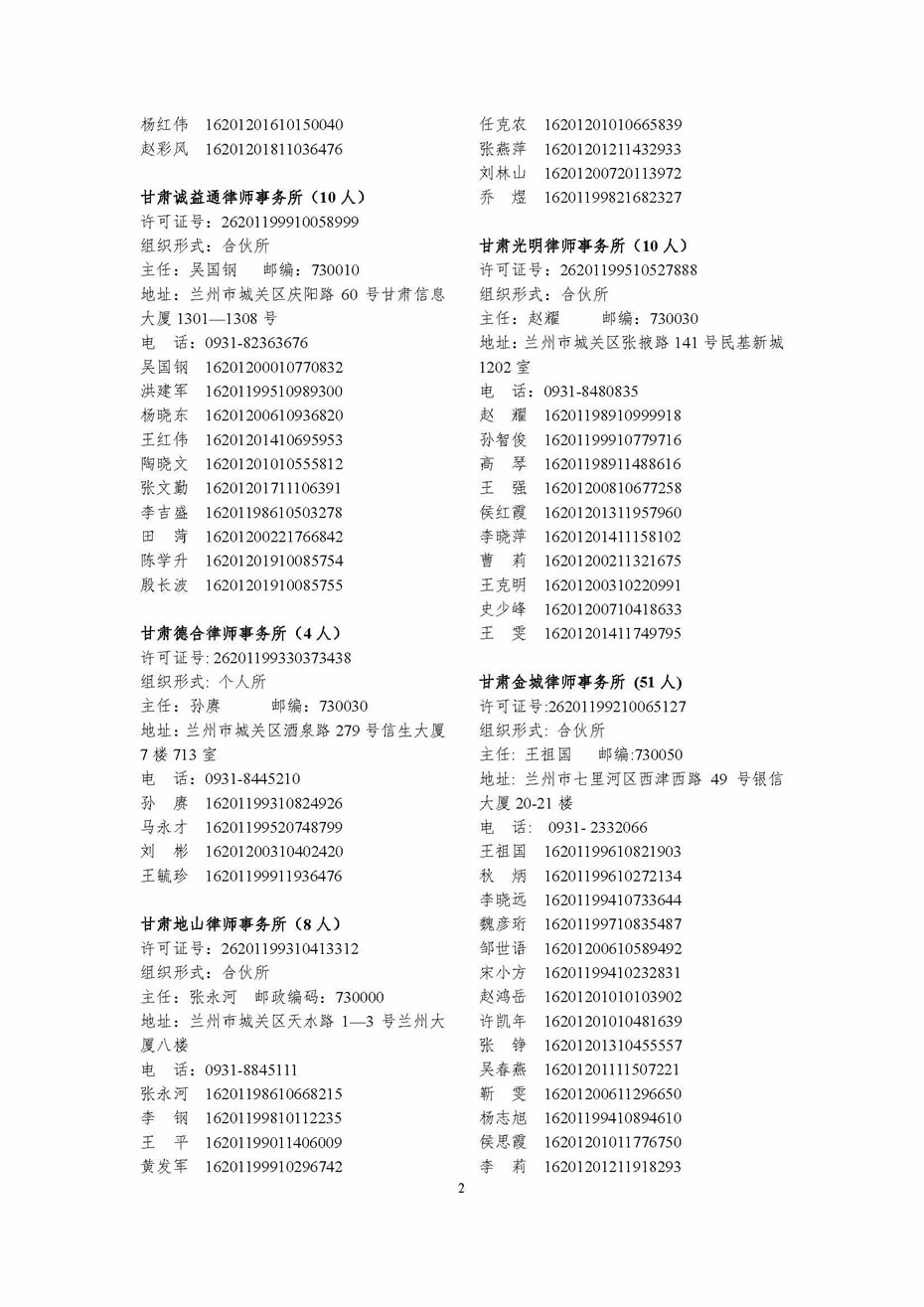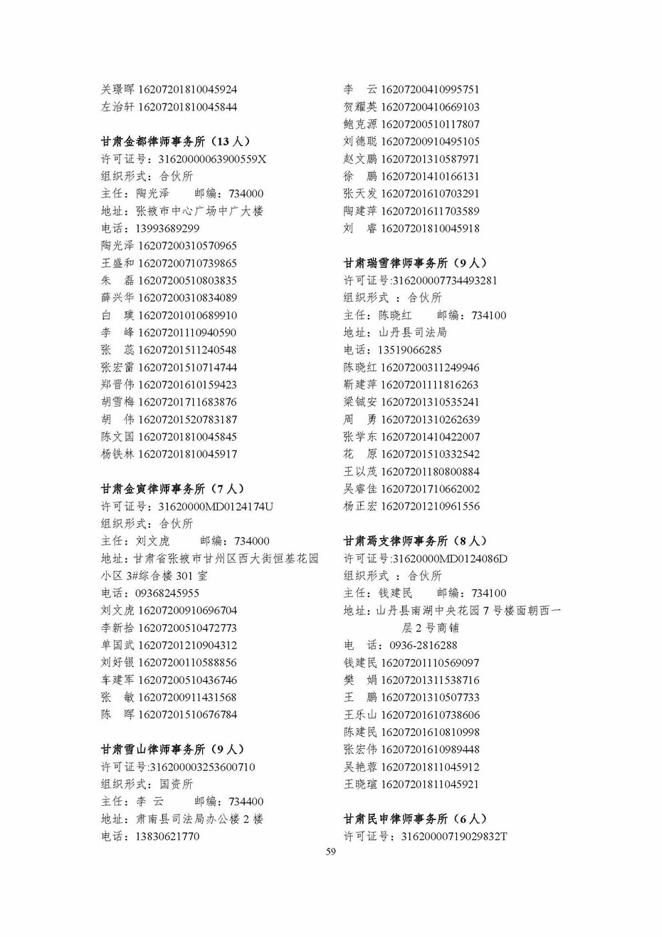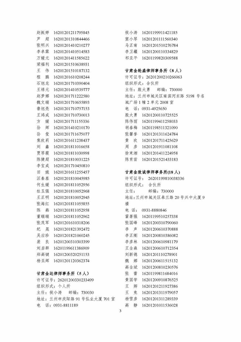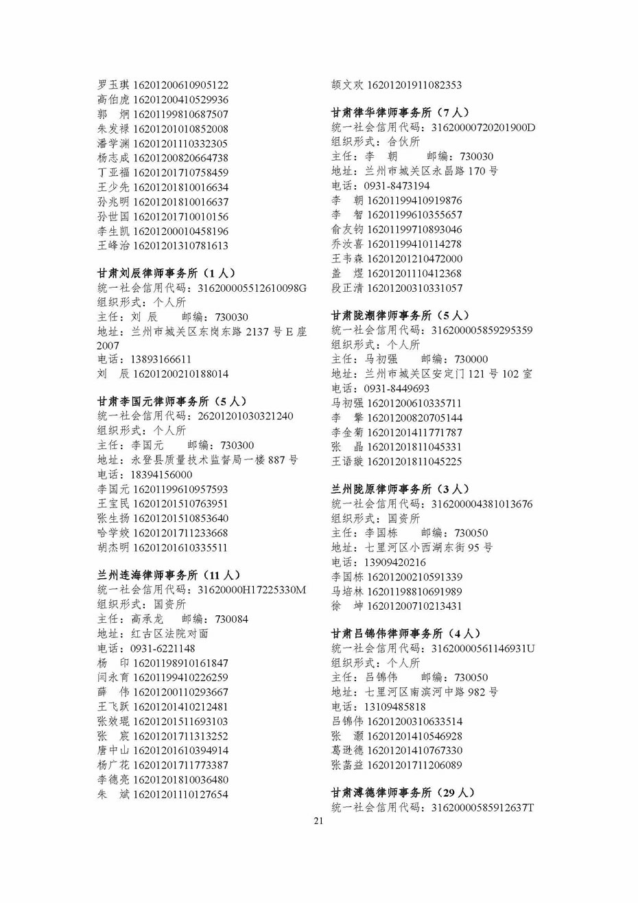甘肃省司法厅2019年全省律师事务所和律师年度考核备案公告