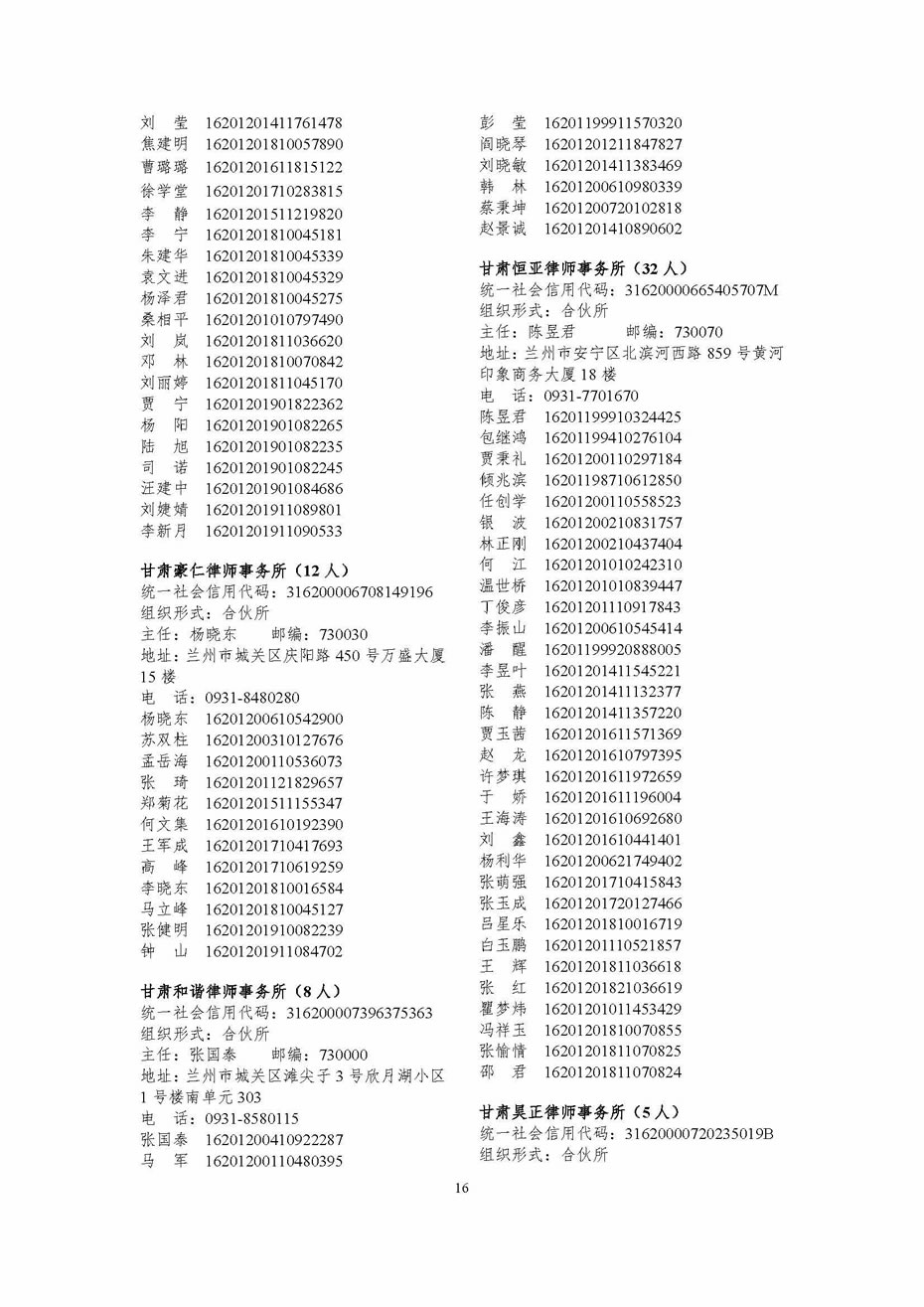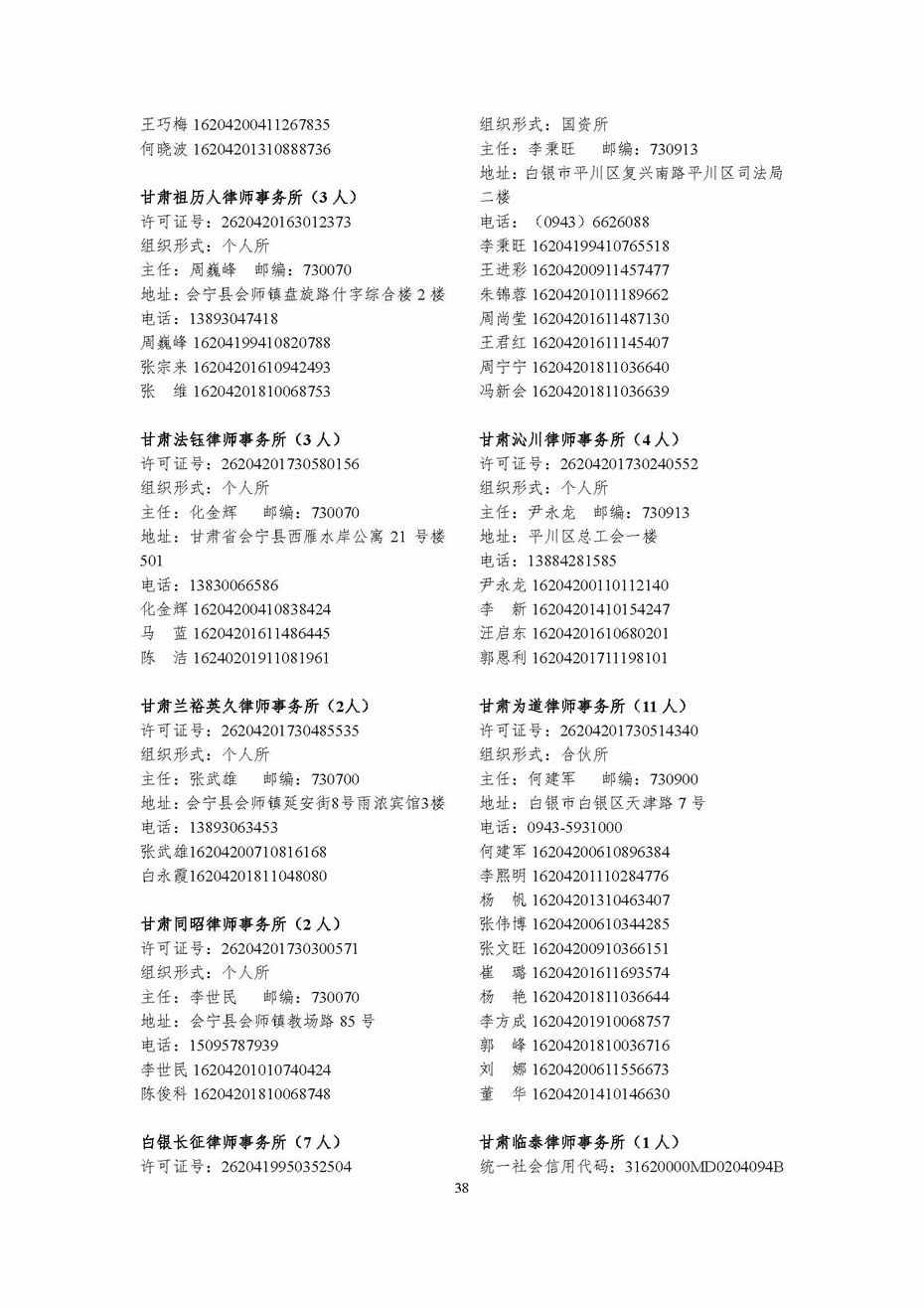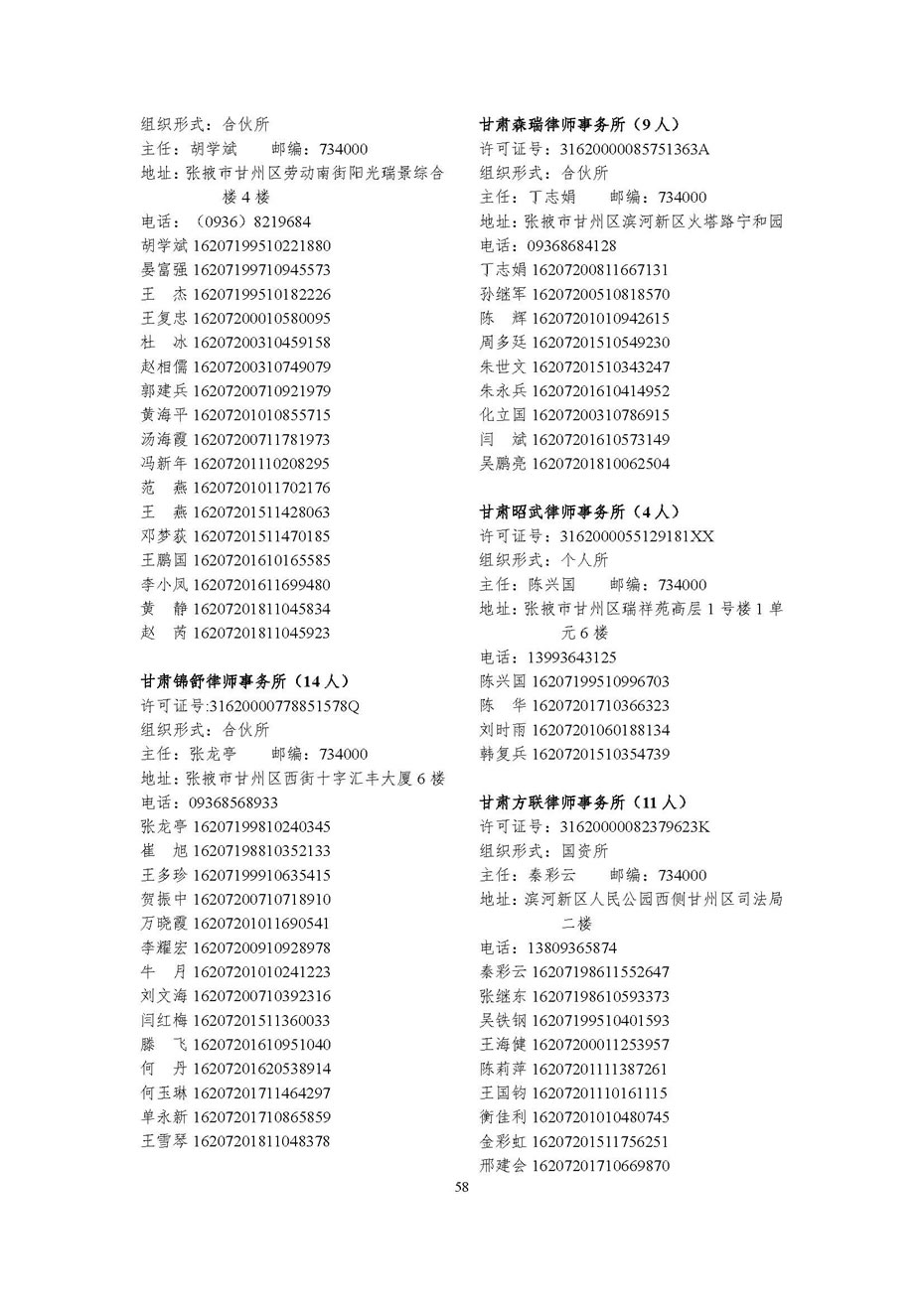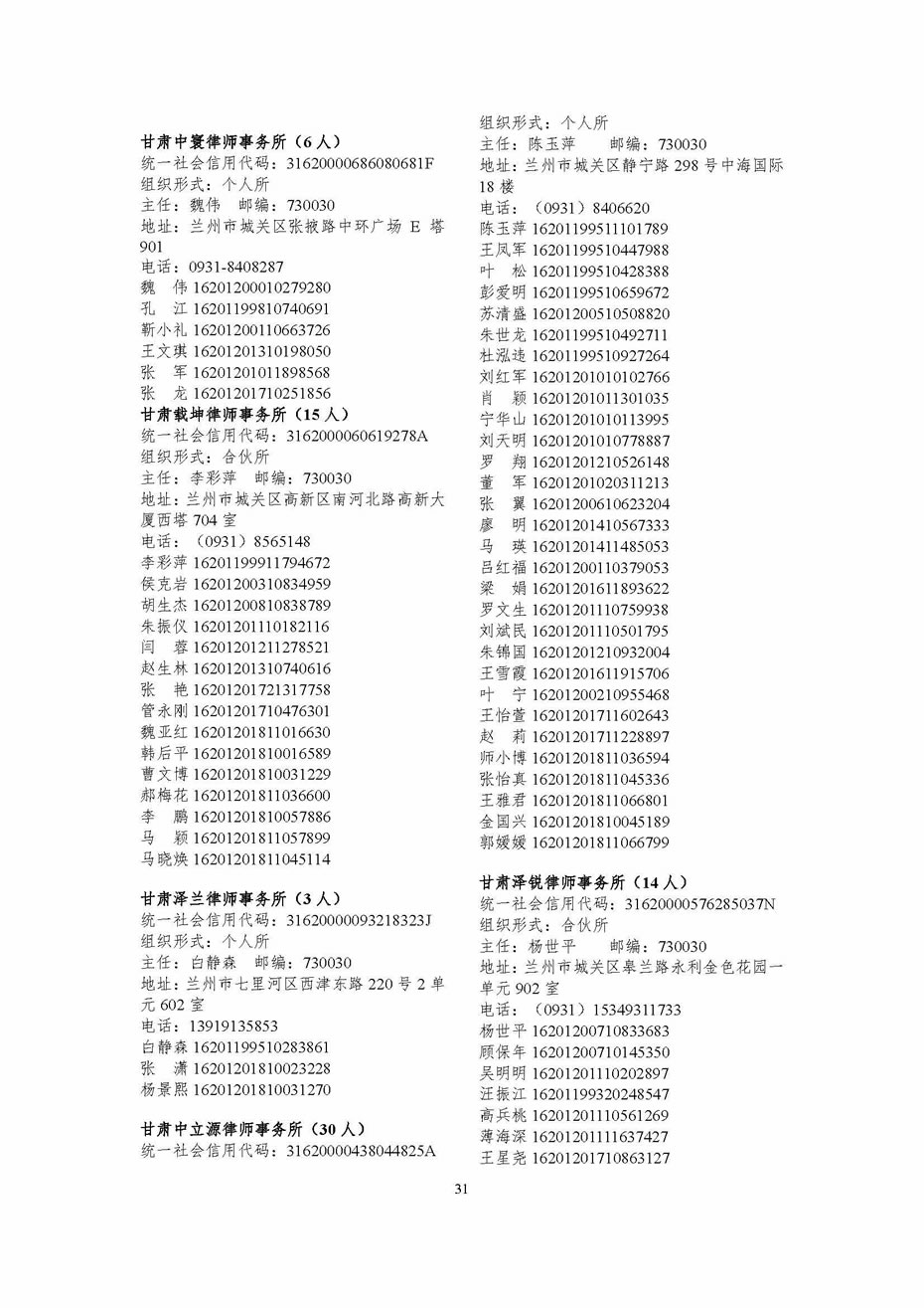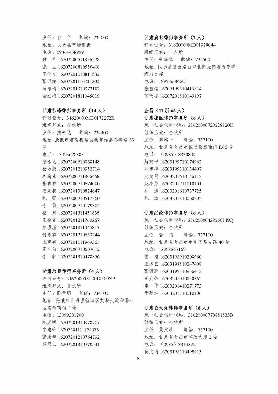 甘肃省司法厅2019年全省律师事务所和律师年度考核备案公告