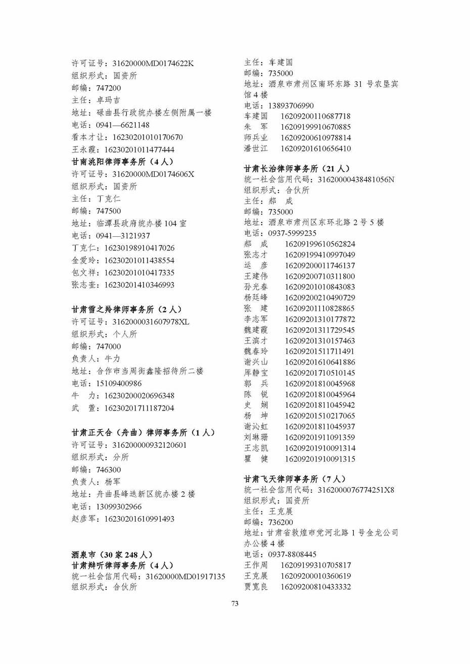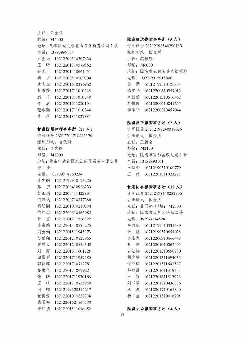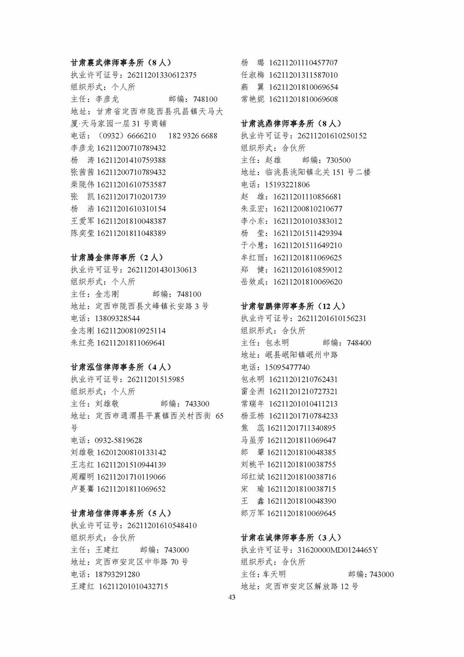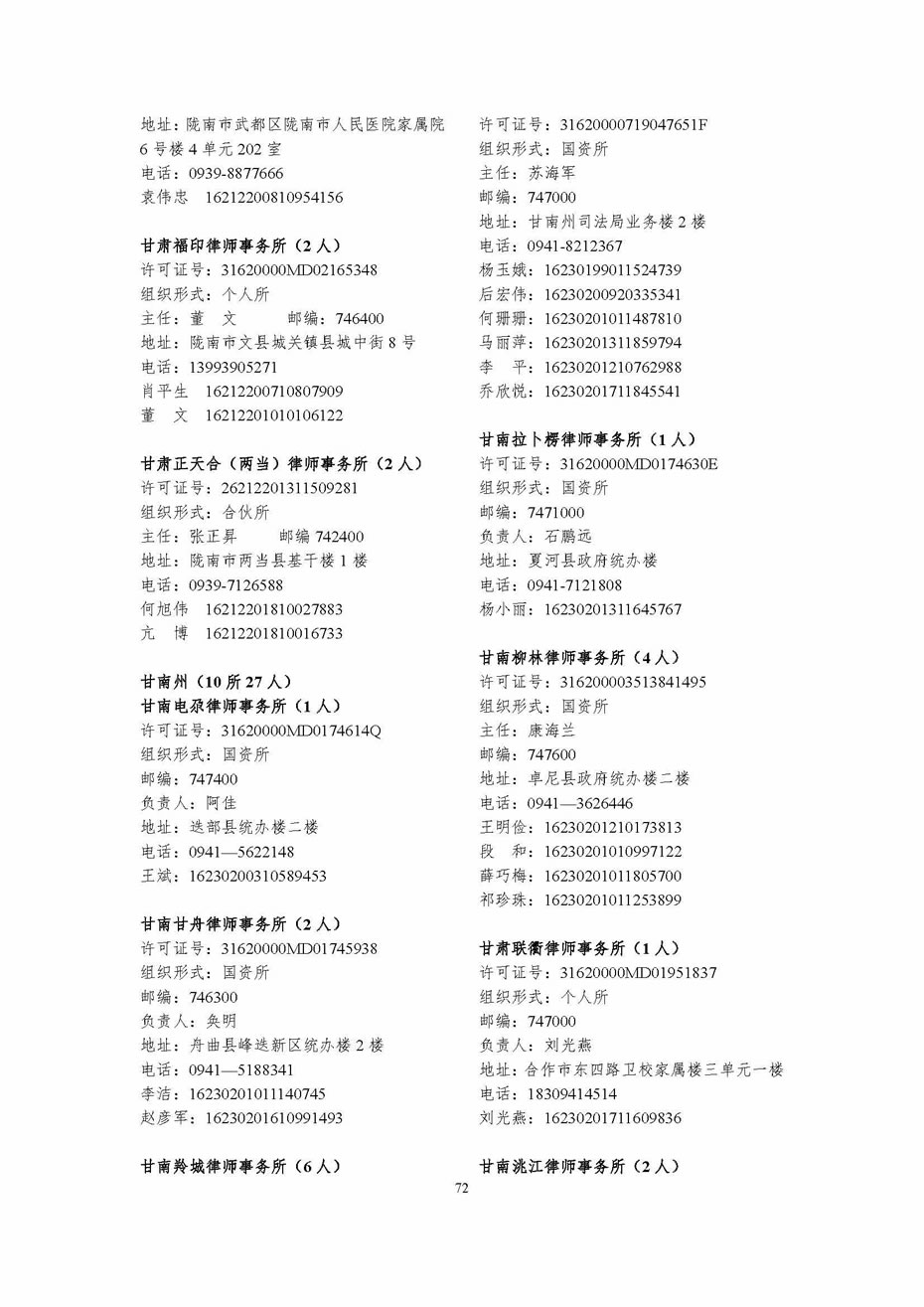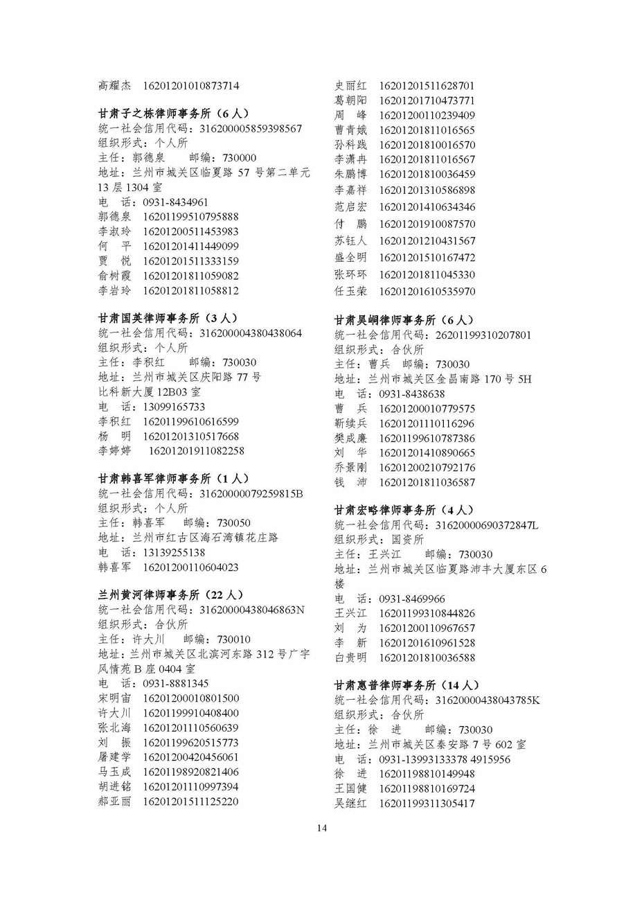 甘肃省司法厅2019年全省律师事务所和律师年度考核备案公告