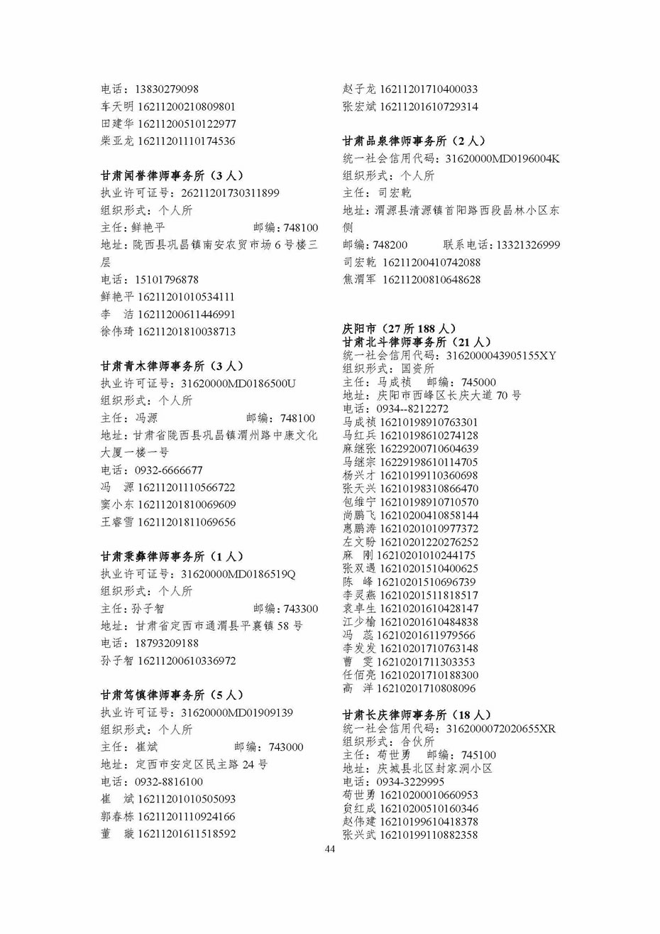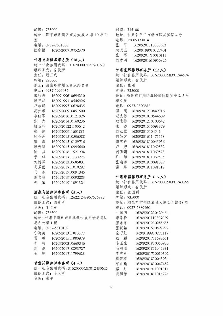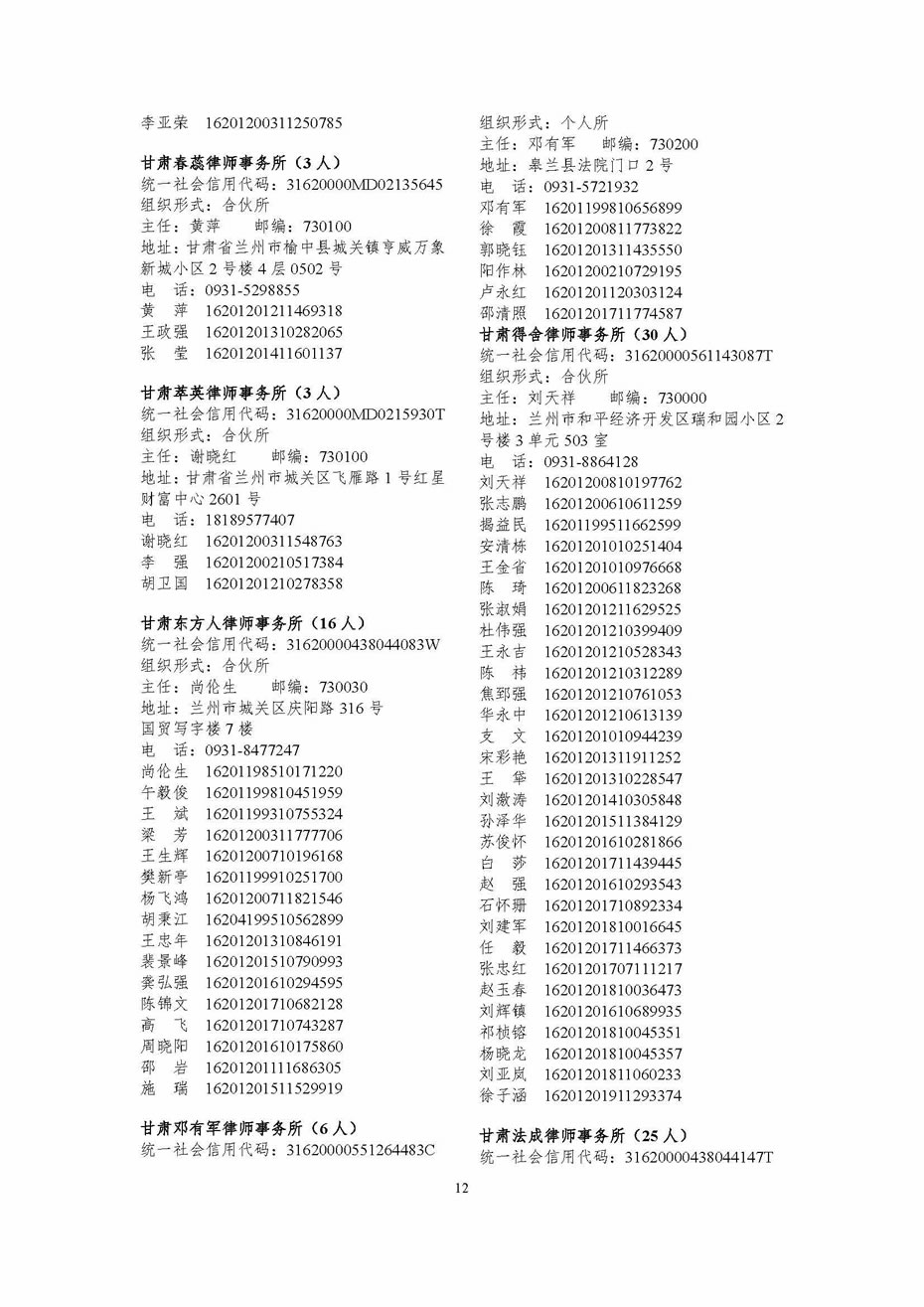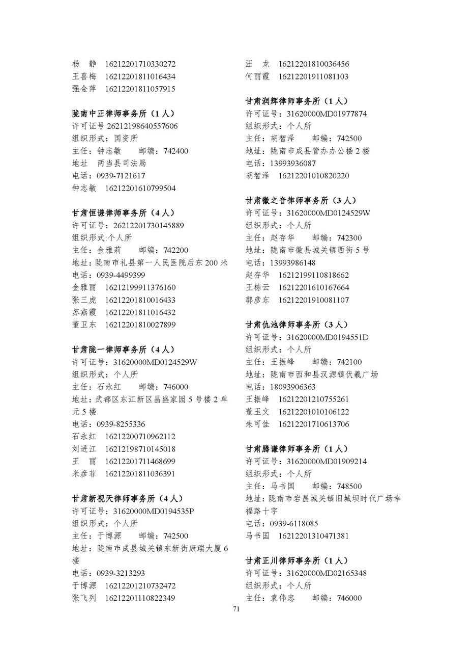 甘肃省司法厅2019年全省律师事务所和律师年度考核备案公告