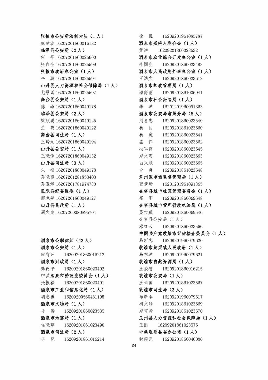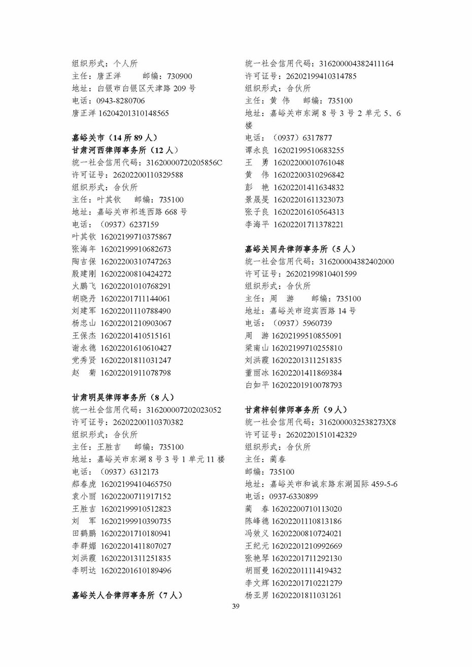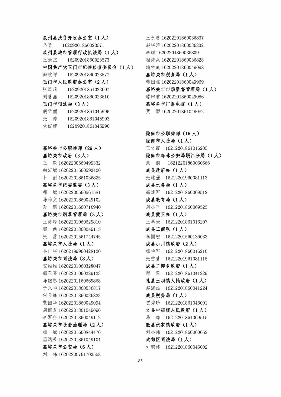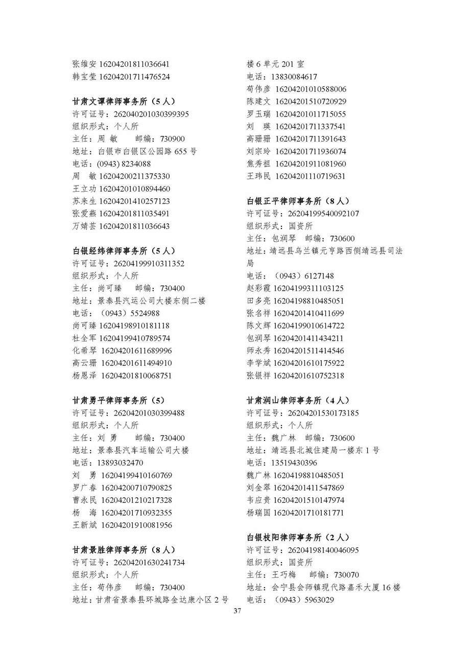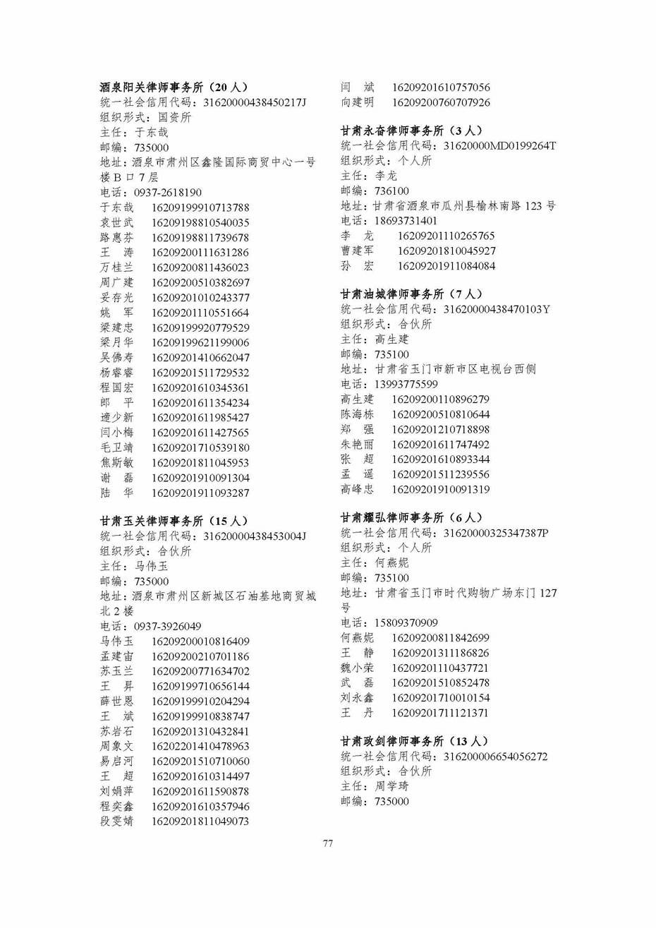甘肃省司法厅2019年全省律师事务所和律师年度考核备案公告