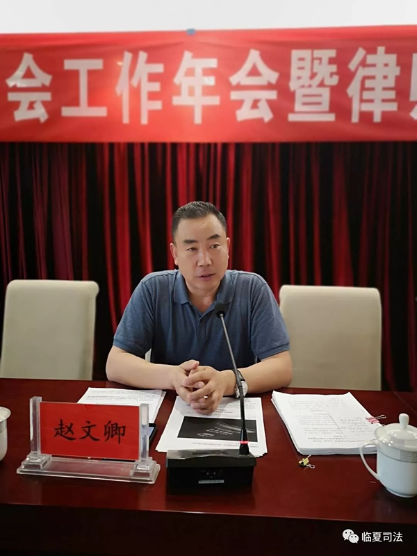 6月22日上午,临夏州律师协会工作年会暨律师业务培训会在临夏市会务中心召开。会议并审议表决通过了州律师协会工作报告、临夏州律师协会章程(修正案)。州司法局党组书记、局长马志雄出席会议并讲话。他肯定了律协这几年的工作成绩,指出了还需改进的地方,同时,进一步明确了律协的职能、定位和使命,提出了今后的工作方向,一是立足民生,服务大局,充分发挥律师在促进经济发展中的职能作用;二是严格履职,强化管理,不断提高律师管理工作的水平;三是强化教育、健全制度,切实提高律师专业化水平和责任意识。州司法局党组成员、副局长、州律师行业党委书记邓万荣主持会议并提出了工作要求。