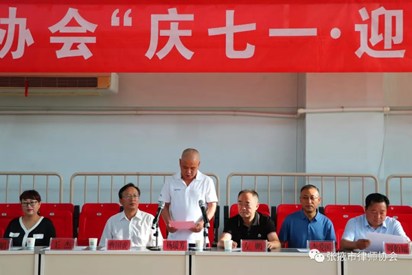 7月6日上午8点30分, 108名律师运动员组成的四支代表队,踏着整齐的步伐,精神饱满地经过主席台走进比赛场地。张掖市“庆七一·迎国庆”律师体育运动会在庄严的国歌声中拉开了序幕。李爱国会长宣布运动会正式开幕。