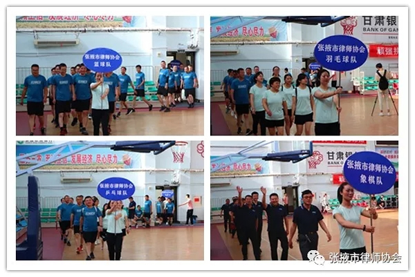 为庆祝中国共产党成立98周年和迎接新中国70周年华诞,感受中国人民艰苦奋斗历程和辉煌成就,增强我市广大律师的国家、民族自豪感,增强律师行业的团结向心力,充分展示我市律师行业坚定的政治素质和良好的精神风貌,积极营造健康向上、努力拼搏的行业氛围,2019年7月6日,张掖市律师协会在张掖市全民健身中心举办了张掖市律师行业“庆七一·迎国庆”体育运动会。来自各县、区的108名律师运动员及全市24家律师事务所的律师参加了本次运动会。