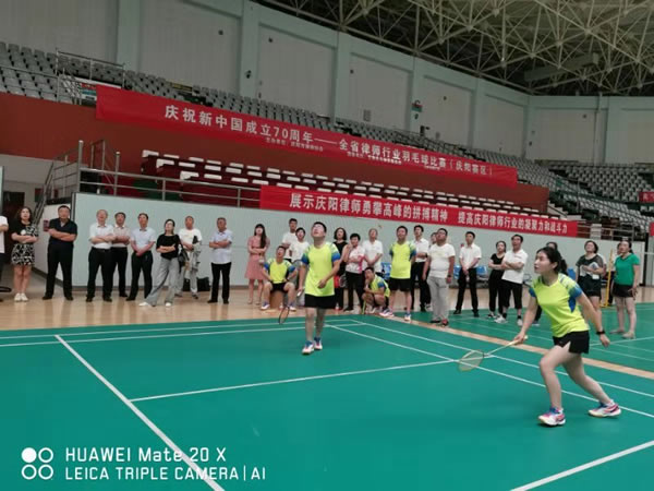 2019年7月20日至21日,由庆阳市律师协会主办,甘肃北斗律师事务所赞助的“庆祝新中国成立70周年--全省律师行业羽毛球比赛(庆阳赛区)”在庆阳市体育馆隆重举行。本次比赛共有全市22家律师事务所的58名律师参赛,分为男子单打、女子单打、男女混合双打三项赛事。