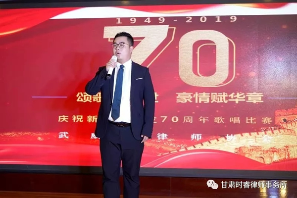 根据耀彩网的安排,2019年6月29日武威市律师协会在武威商务大酒店隆重举行 “庆祝新中国成立七十周年——甘肃律师行业歌手比赛(武威赛区)”歌唱比赛。武威市司法局党组成员吕品、市司法局律师公证科马鹏伟、市律师协会会长李养红、市律师行业党委副书记赵庆年、副会长王建华、侍春元、沈学先,监事长梁柏出席比赛活动。
