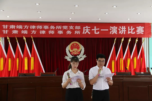 为隆重纪念中国共产党建党98周年,深入贯彻落实习近平新时代中国特色社会主义思想和党的十九大精神,甘肃端方律师事务所党支部于6月29日下午,组织律所党员和律师们举办了“迎七一——初心与使命”主题演讲比赛。
