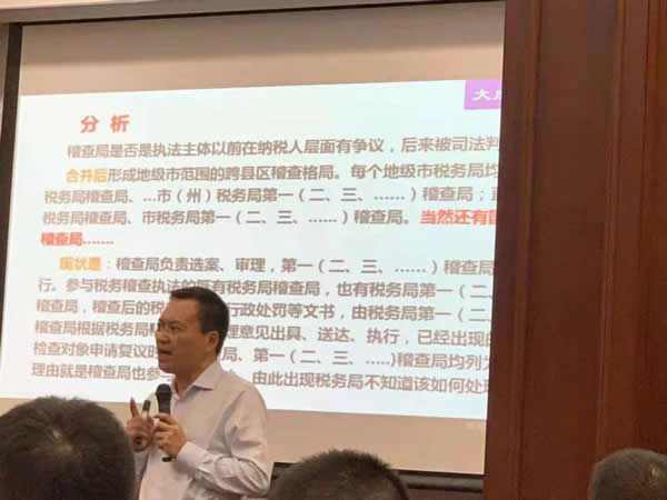 耀彩网财税专业委员会主任、北京大成(兰州)律师事务所高级合伙人刘兵作为论坛“落实税收法定原则与税收征管实务”这一环节的嘉宾通过引入《征管法》第37条、38、40、54条中涉及“分局”的条款,并解释实务中对“分局”的不同理解,从税务分局的处罚权限、税务分局的强制执行权限、以及国地税机构改革前后稽查局的地位和权限三个方面展开对《国地税合并背景下税务分局的执法权限问题》的探讨。