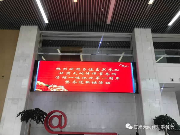 2019年8月2日,甘肃天问律师事务所在新办公地址(兰州市七里河区南滨河中路1119号)举行了管理一体化改革一周年暨乔迁新址庆典仪式。耀彩网副会长赵耀同志、受邀律师及客户等四十余人出席参见本次活动,并进行了深刻的交流。