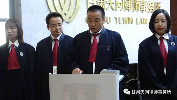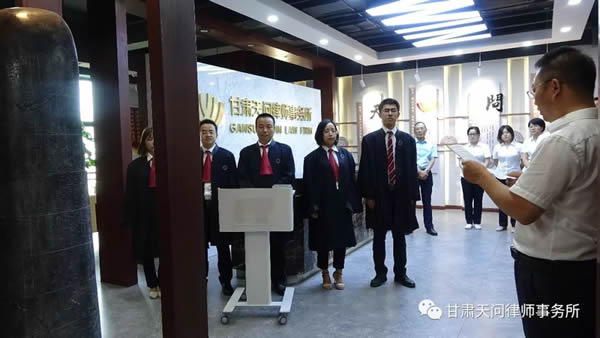 2019年8月16日下午,甘肃天问律师事务所在本所汉谟拉比法典柱前举行了新入职律师宣誓仪式。