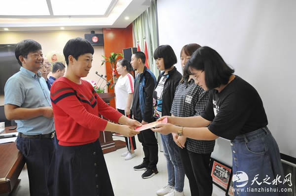 天水市妇联副主席(挂职)何轶鼓励即将跨入大学校门的寒门学子们,正确面对生活中的困难,做到自立自强,志存高远。甘肃鑫盾律师事务所主任辛建存向学子们提出期望,期望他们能够珍惜来之不易的学习机会,以只争朝夕的精神,勤奋学习,自强不息,同时葆有感恩之心,传递爱心,将扶贫济困、团结互助的精神不断发扬光大。