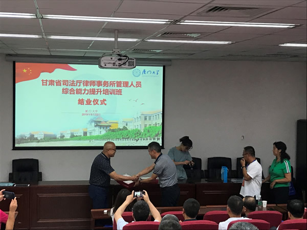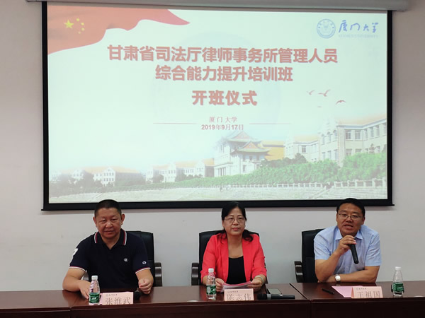 9月17日,甘肃省司法厅主办、甘肃省律协承办的全省律师事务所管理人员综合能力提升培训班在厦门大学外文学院开班。省律师协会副会长王祖国、省律师协会秘书长张维武、厦门大学外文学院党委书记陈志伟出席了开班仪式,来自全省各市州及直属分会的80名律所管理人员参加了培训班。
