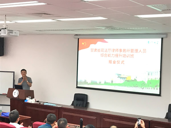 开班仪式上厦门大学外文学院党委书记陈志伟首先对所有参加培训的甘肃律师事务所管理人员表示了欢迎,并介绍了厦门大学的发展历史、学术专业以及师资力量,最后预祝所有参训人员在美丽的厦门大学能顺利结业。