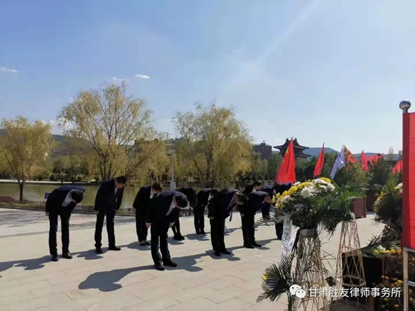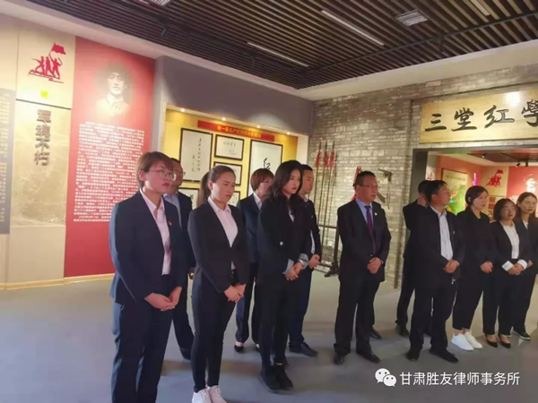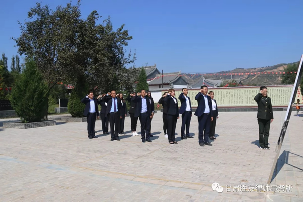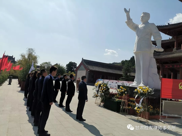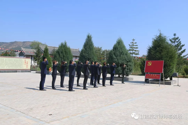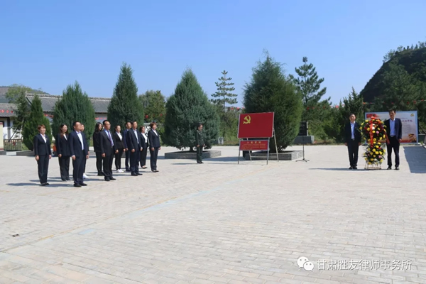 为庆祝新中国成立70周年,结合全省律师行业开展“不忘初心、牢记使命”主题教育的实施方案,2019年9月28日上午,甘肃胜友律师事务所党支部组织全体律师先后赴泾川县吴焕先纪念馆、崇信县保至善纪念馆开展革命传统教育暨新中国成立70周年主题党日活动,教育全体党员重温革命历史,缅怀革命先烈,认真领会“不忘初心、牢记使命”主题教育的精神实质。