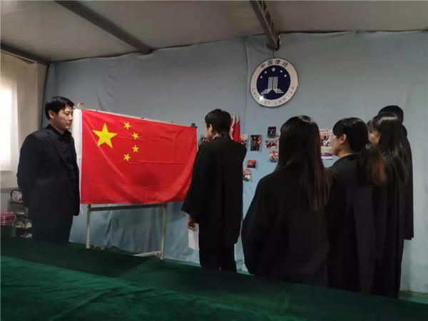 领誓人许阳宣布宣誓仪式开始后,全体参加人员起立奏唱国歌。新申请执业律师整齐站立在领誓人身后,监誓人叶其钦会长在新申请执业律师侧前方站立,新申请执业律师庄严宣誓:“我是中华人民共和国律师,忠于宪法,忠于祖国,忠于人民,维护当事人合法权益,维护法律正确实施,维护社会公平正义,恪尽职责,勤勉敬业,为建设社会主义法治国家努力奋斗”!