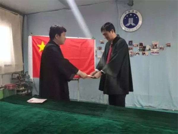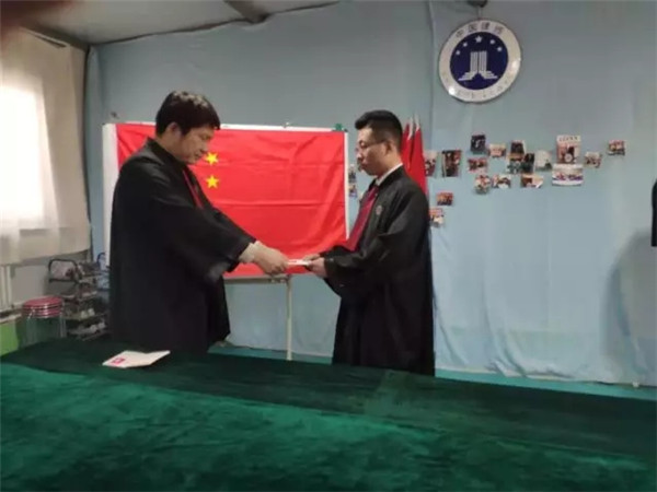 宣誓完毕后,许阳向新执业律师颁发律师执业证。