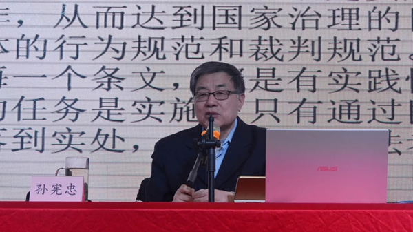 讲座邀请全国人大代表、十三届全国人大宪法和法律委员会委员,中国社会科学院学部委员孙宪忠教授,以“准确认识民法典、全力实施民法典”为主题,为我省参会执业律师作专题讲授。省司法厅党委委员、副厅长,省律师行业党委书记韩世峰出席并聆听讲座。省律协副会长赵耀主持讲座。
