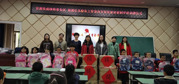 一直以来,法成律师在做好本职工作的同时,不忘回馈社会。此次主题党日活动结合我所实际,通过兰州五中支教老师马莉,向四川省凉山彝族自治州甘洛县新市坝镇阿尔铅矿民族寄宿制学校三个班的180多名学生邮寄捐赠了书包、文具等学习用品,为孩子们的学习生活提供切实的物资支持,助力学校创造更好的学习条件。