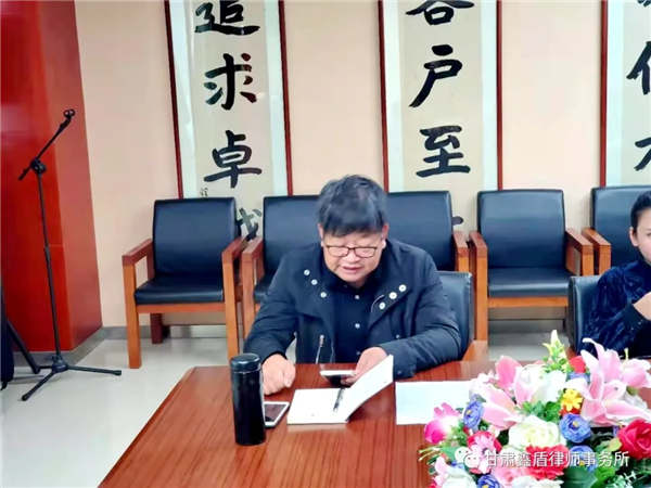 11月13日下午,甘肃鑫盾律师事务所党支部书记、主任辛建存主持召开专题学习会议,认真学习贯彻中共十九届五中全会精神,在所全体党员律师及部分非党员律师参加了专题学习。