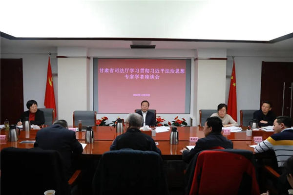 本网讯 为深入学习宣传贯彻中央全面依法治国工作会议精神和习近平法治思想,甘肃省司法厅于11月25日上午邀请在兰部分法学专家学者召开座谈会,围绕深入学习贯彻习近平法治思想,推进法治甘肃建设,向各位专家问计问策。